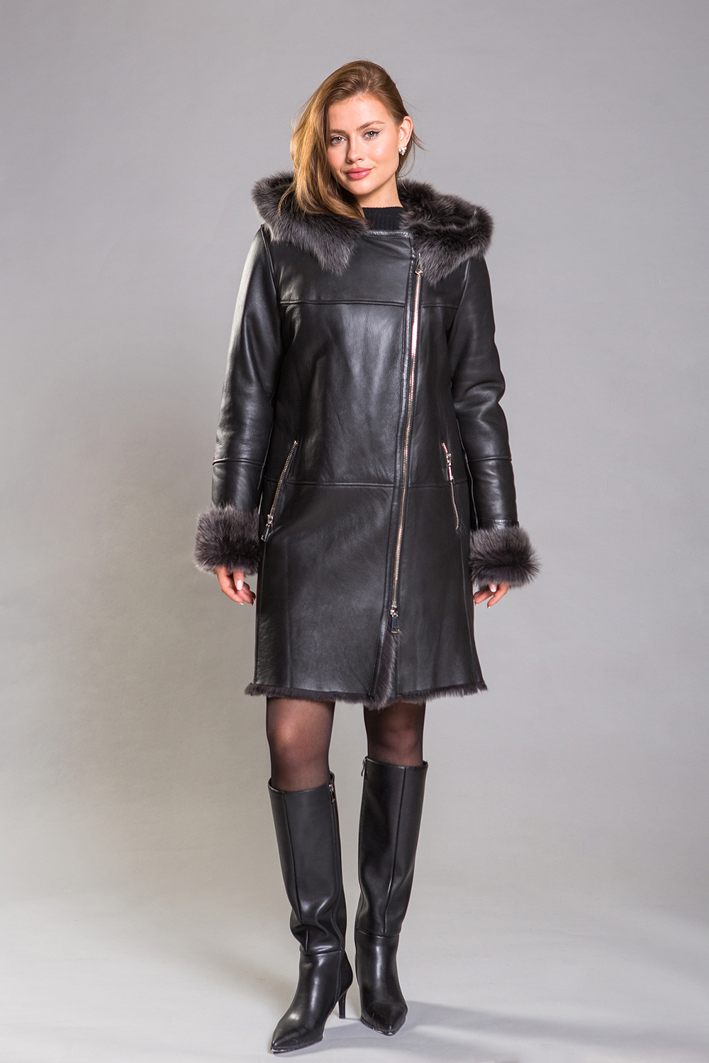 Женская дублёнка, изготовленная из натурального меха тосканского ягнёнка, станет вашим любимым аксессуаром! Модель застегивается на молнию, а рукава можно подворачивать и украшать декоративными ремешками. На карманах и по бокам также имеются молнии. Длина изделия составляет 90 см. Крой дублёнки отличается удобством и универсальностью, а комфортный капюшон надёжно защитит от холода!