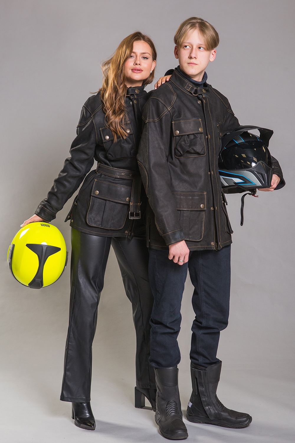 Эта мотокуртка в стиле Trialmaster выполнена из натуральной высококачественной кожи, что делает её прочной и долговечной. Она оснащена воротником-стойкой, который надёжно защищает от ветра и непогоды, застегиваясь на кнопку. Модель имеет два кармана-клапана: на груди и внизу куртки, которые также закрываются на кнопки. Куртка украшена аккуратными и красивыми прострочками по всей поверхности. По бокам расположены небольшие разрезы-клапаны, которые фиксируются кнопками. Рукава куртки имеют удлиненную форму и застёгиваются на кнопки. Куртка застёгивается на молнию и кнопки, а в комплекте идёт пояс-ремень. Она идеально подходит для городской езды и коротких поездок, обеспечивая надёжную защиту от непогоды и сохраняя тепло при не слишком высоких температурах. Кроме того, её можно носить и в повседневной жизни!