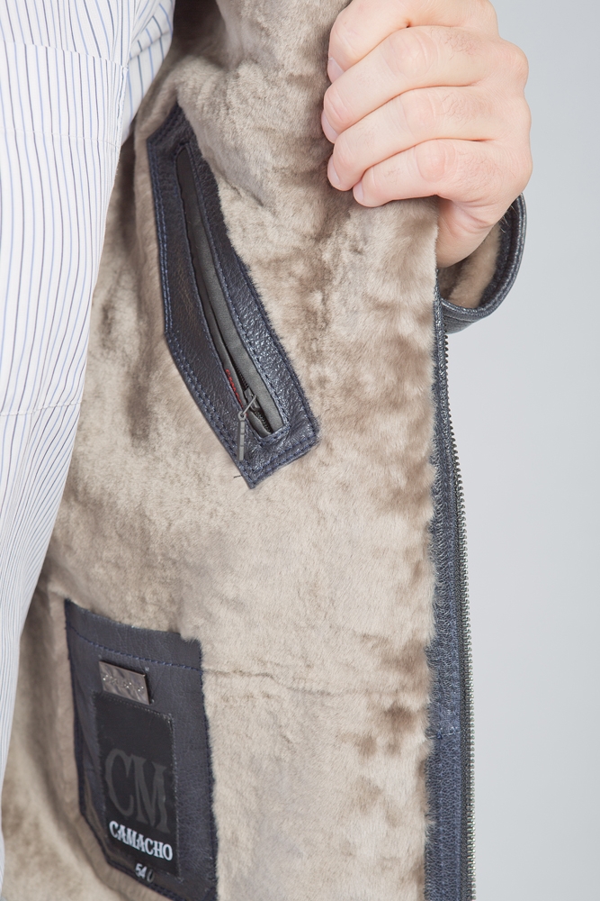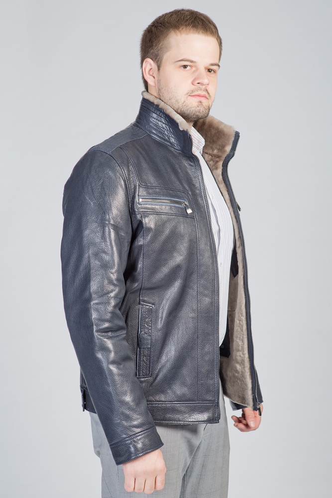 Мужская кожаная куртка. Внутри мех овчины. Силуэт классический прямой на замке. Воротник стойка.