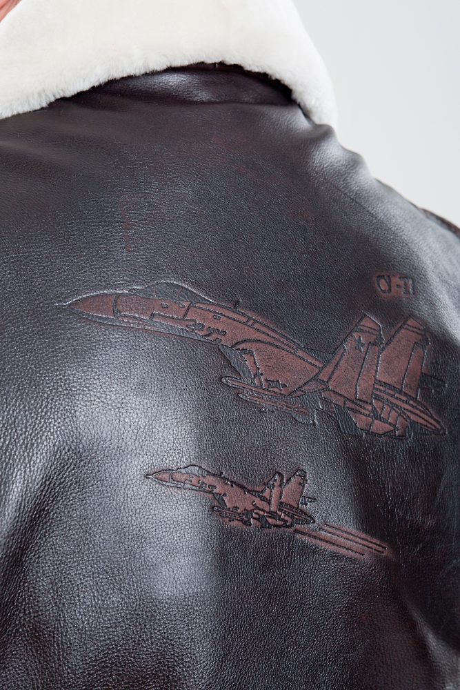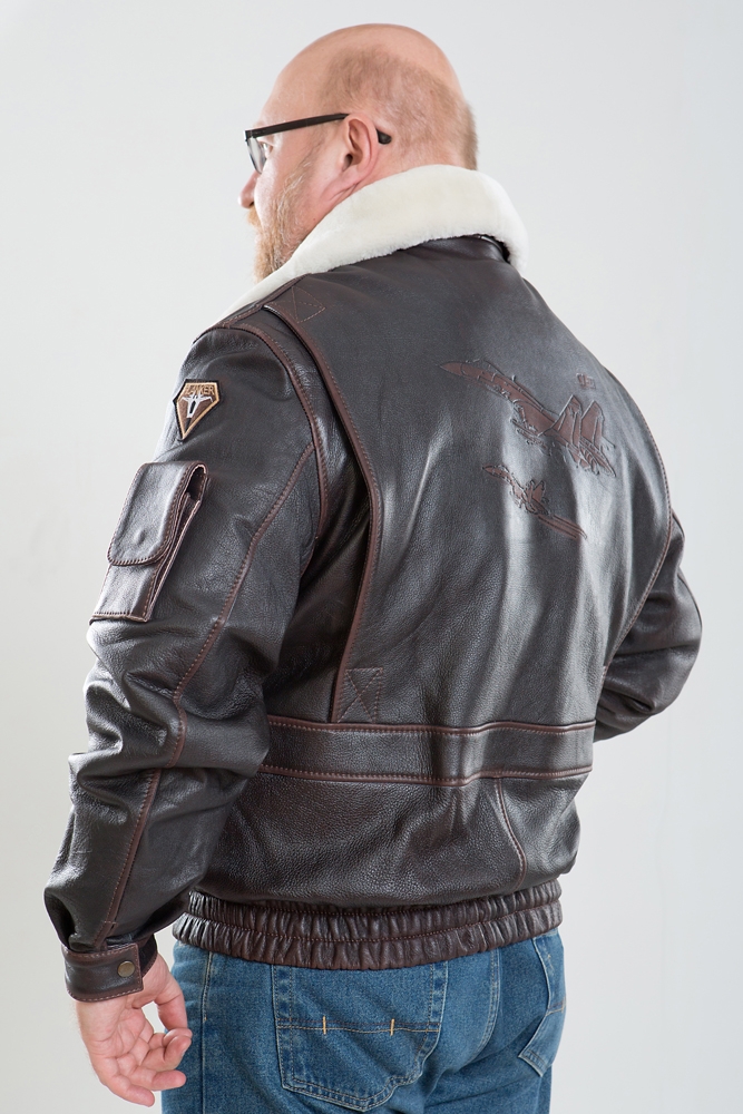 Куртка мужская из кожи буйвола. Модель ''Пилот'', по низу изделия резинка. Воротник из меха овчины.