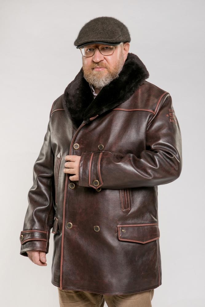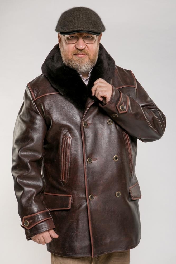 Куртка (бушлат) из плотной, прочной кожи буйвола. Воротник и часть внутренней отделки из меха овчины. У модели стеганная хлопковая подкладка и утеплитель синтепон. Кожа из которой сшита куртка долговечна и надежна. Прекрасно выдерживает перепады температур и держит тепло. Натуральная кожа двойного крашения в процессе носки меняет цвет. Куртка благодаря эффекту старения становится неповторимой, уникальной и имеет винтажный вид!