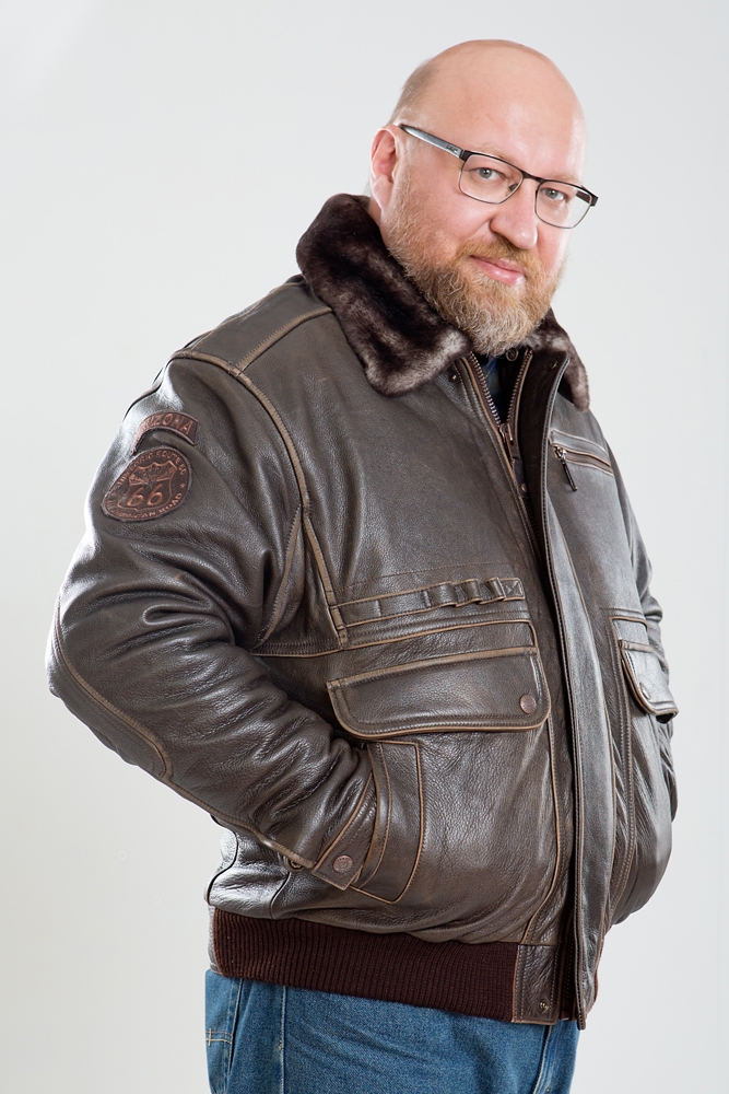 Куртка мужская из кожи буйвола. Модель ''Пилот'', по низу изделия резинка. Воротник из меха овчины.