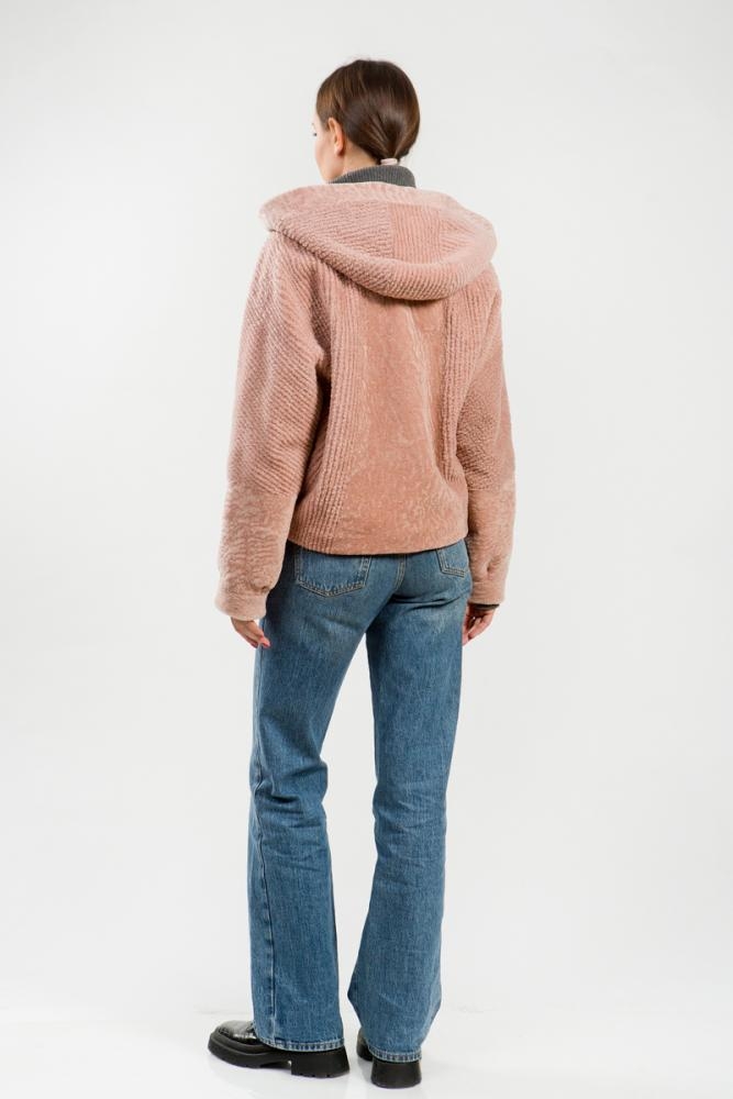 Курточка из меха овчины (астраган, керли) с капюшоном. Рукава изделия свободного кроя и имеют манжеты. Модель застегивается на молнию. Кармашки курточки декорированы натуральной кожей. Длина изделия 60 см. Такая меховая курточка из астрагана и керли является оптимальным вариантом для повседневного образа. Мех обеспечивает надежную теплозащиту, а благодаря небольшому весу шубка достаточно легкая и комфортная!
