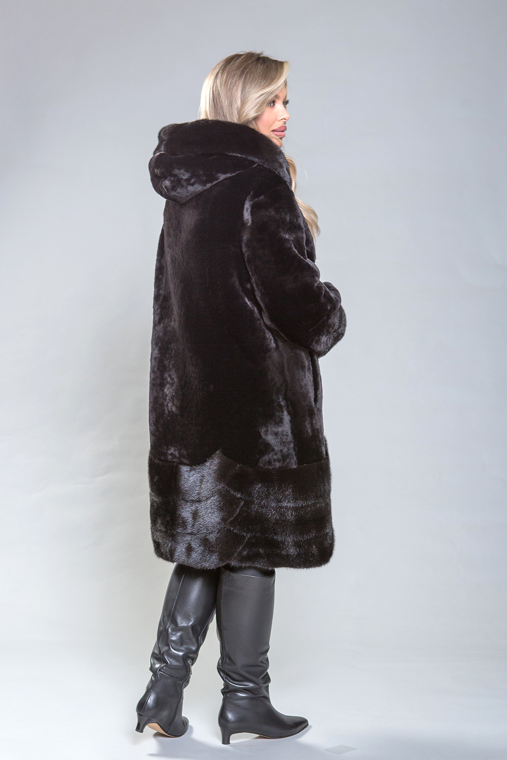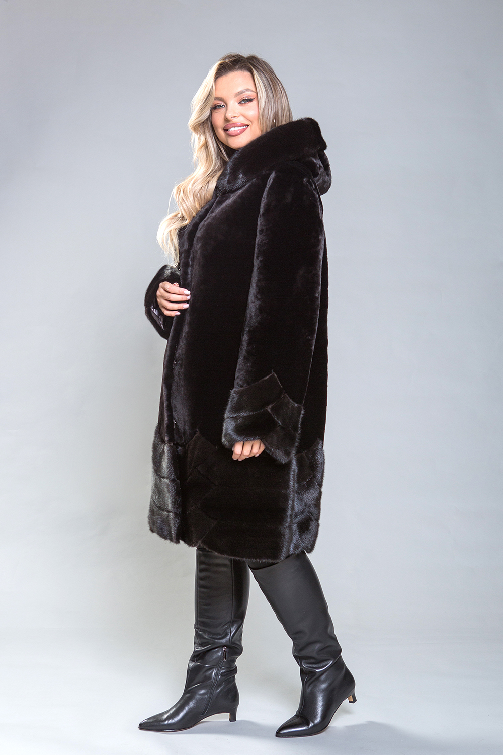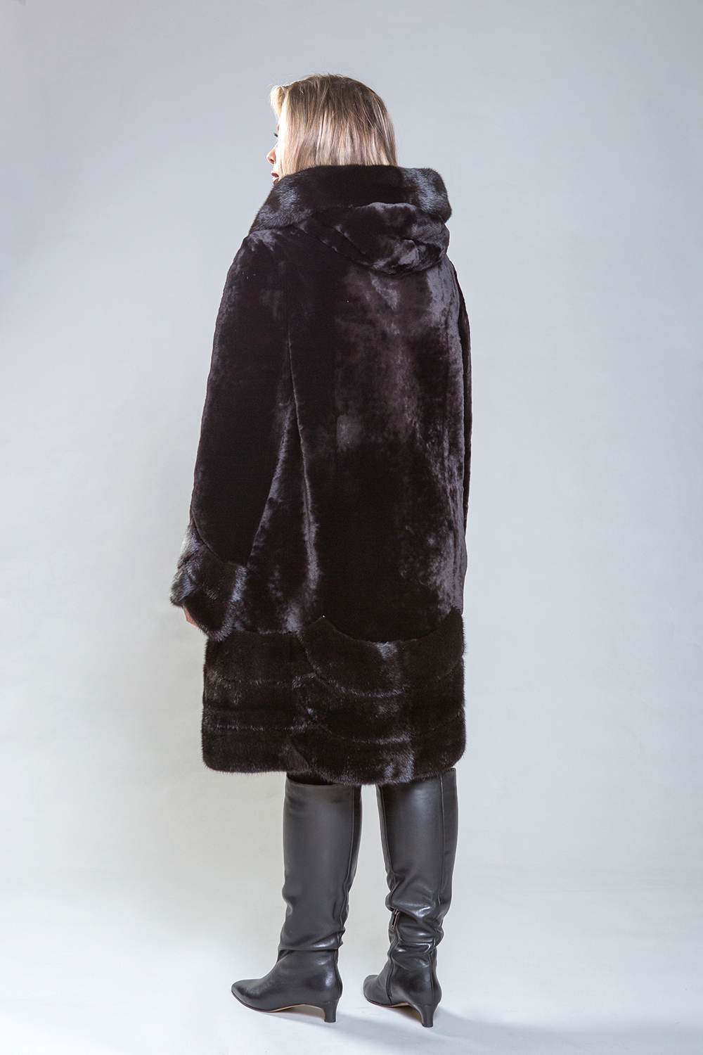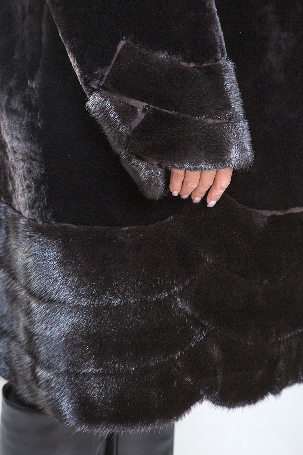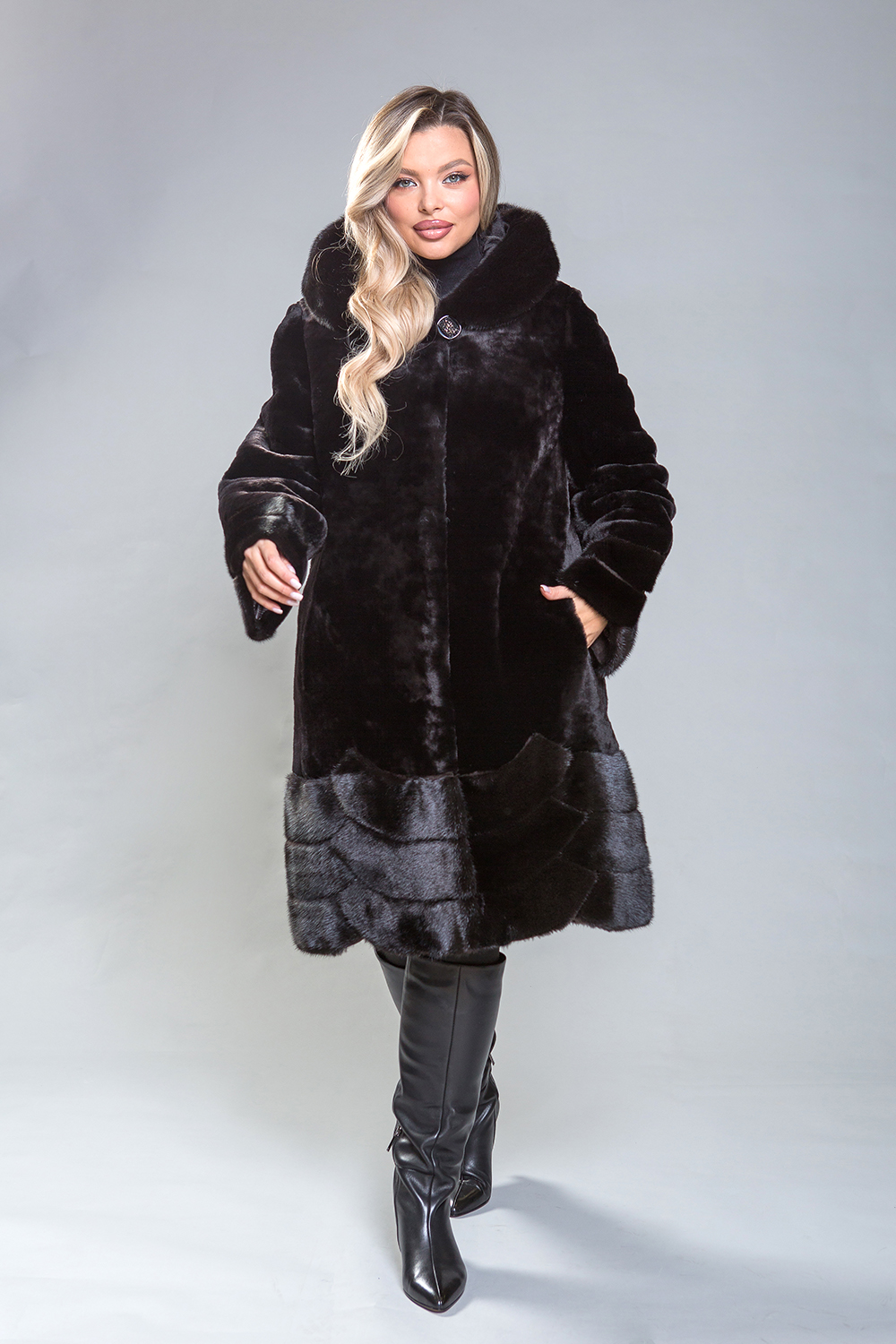 Роскошное полупальто из овчины с изысканными элементами. Рукава, капюшон и низ модели выполнены из норки, украшенной геометрическими узорами и мелкими стеклянными бусинами. Высококачественная овчина класса люкс обеспечивает тепло и комфорт, сохраняя свои свойства даже при повышенной влажности. Капюшон фиксируется на пуговицу, а шуба — на металлические клипсы. Длина изделия составляет 100 сантиметров, что делает его идеальным для повседневного использования. Легкий вес и отличное сохранение тепла делают это полупальто незаменимым элементом гардероба.