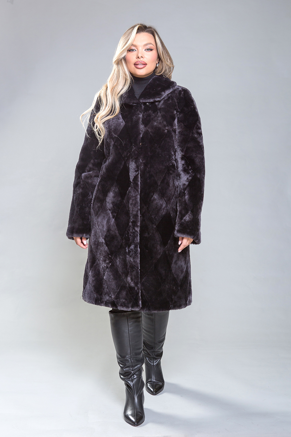 Полупальто из овчины — стильная и практичная модель. Воротник фиксируется на пуговицу, а шубка застегивается на клипсы. Длина изделия составляет 100 см. Модель изготовлена из пластинок овчины, выложенных в форме ромбов. Это универсальное решение, подходящее для любого типа фигуры. Профессиональные стилисты отмечают, что классический силуэт полупальто добавляет образу элегантности и утонченности.