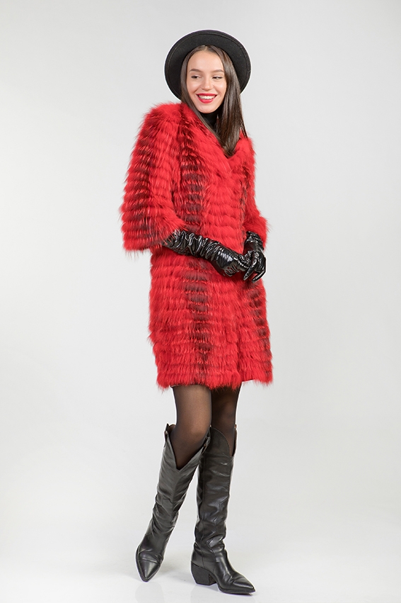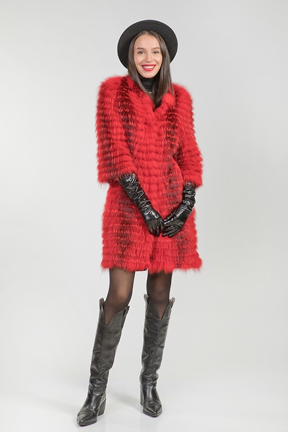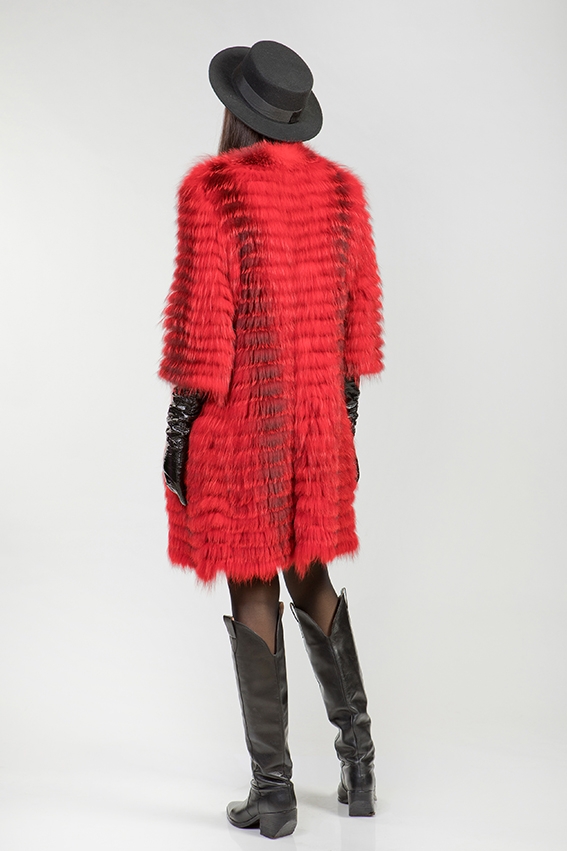 Полупальто из меха лисы на трикотаже. Рукава модели слегка укорочены, что позволяет носить ее с длинными перчатками или митенками. В таком меховом пальто будет комфортно и уютно в прохладную погоду!
