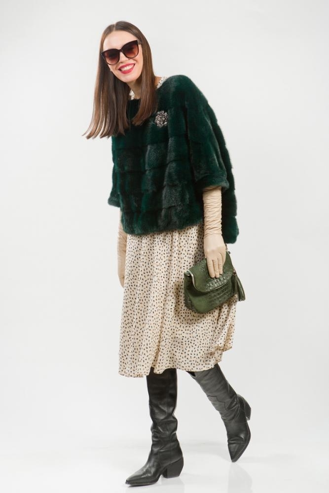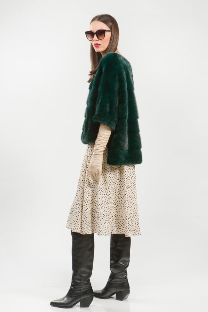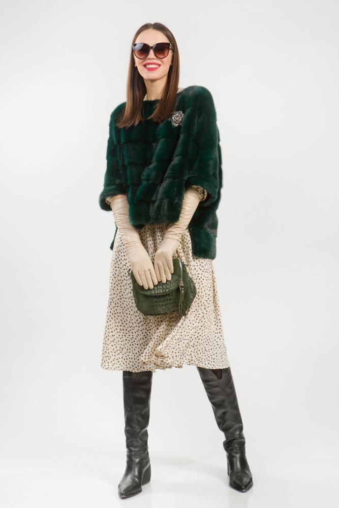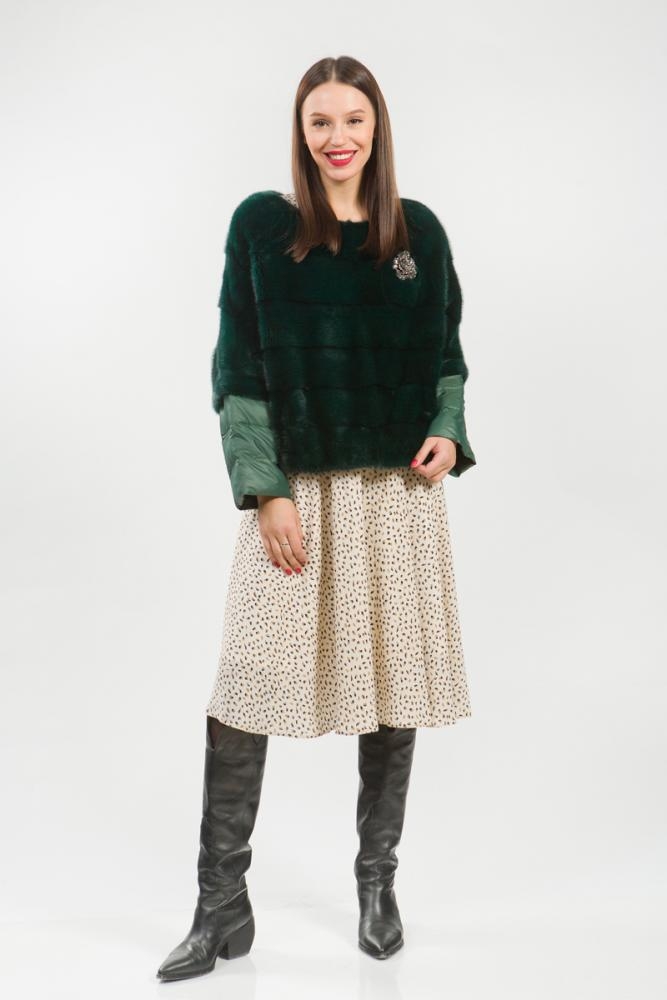 Курточка-жилет из меха норки. Крой изделия пластины с добавлением роспуска. Рукава модели трансформируются в более укороченные. Лаконичный дизайн воротника напоминает стиль Шанель. Низ и рукава изделия имеют регулирующие утяжки. Такая изящная курточка хорошо сидит на любой фигуре и гармонично сочетается с различными аксессуарами. Универсальный вариант в прохладную погоду!