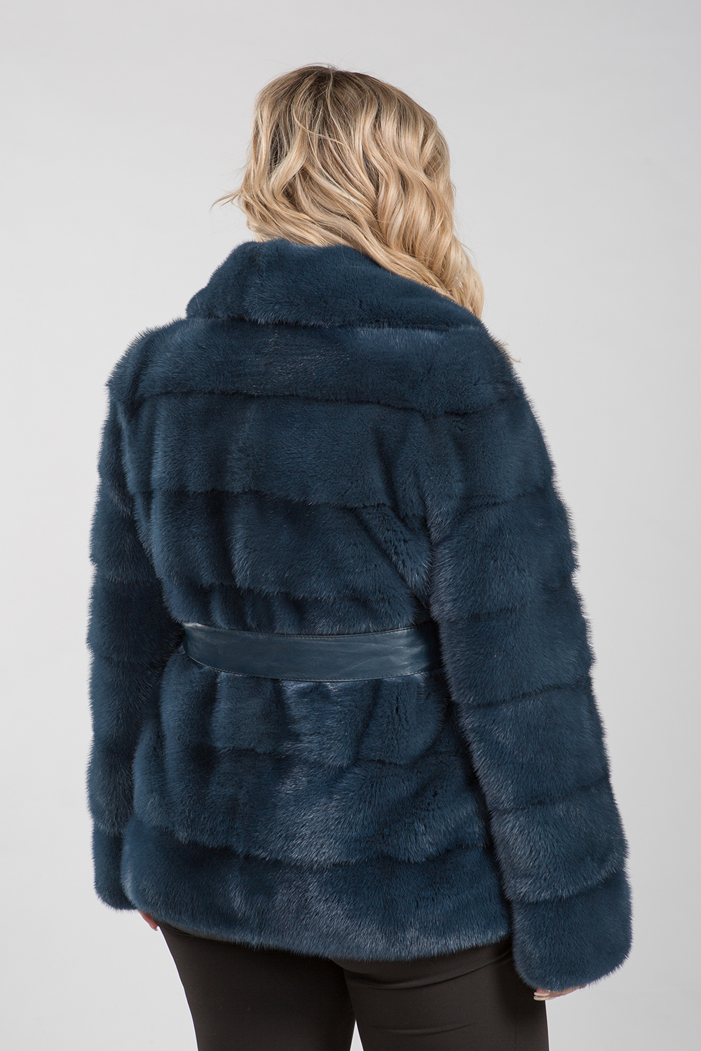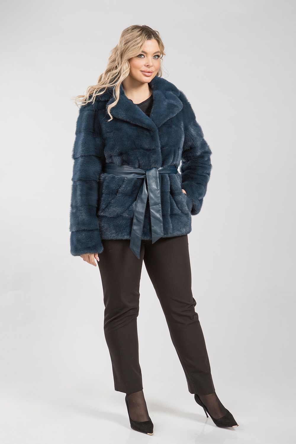 Курточка из меха норки. Английский воротник модели трансформируется в классический. Крой изделия поперечная выкладка пластин. Внутри на талии, на рукавах и по низу модели курточка оснащена регулирующими утяжками. Рукава шубки могут трансформироваться в более укороченные с помощью скрытых молний. Длина изделия 70 см. Кожаный пояс идет в комплекте. Великолепный цвет муссона с синим отливом будет к лицу и блондинкам и брюнеткам! Создайте новый модный, зимний образ!