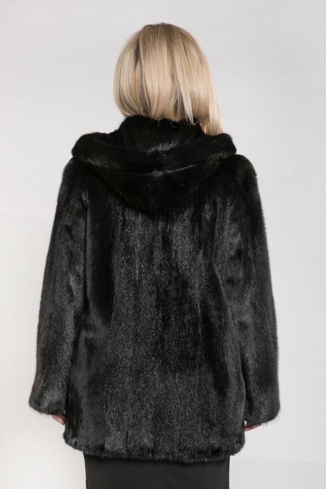 Меховая куртка из норки с капюшоном, предназначенная для автоледи. Крой выполнен в свободной манере. Модель оснащена регулируемыми утяжками на рукавах, внизу изделия и в области талии. Длина куртки составляет 80 см. Элегантный блеск черного меха привлекает внимание каждой модницы!