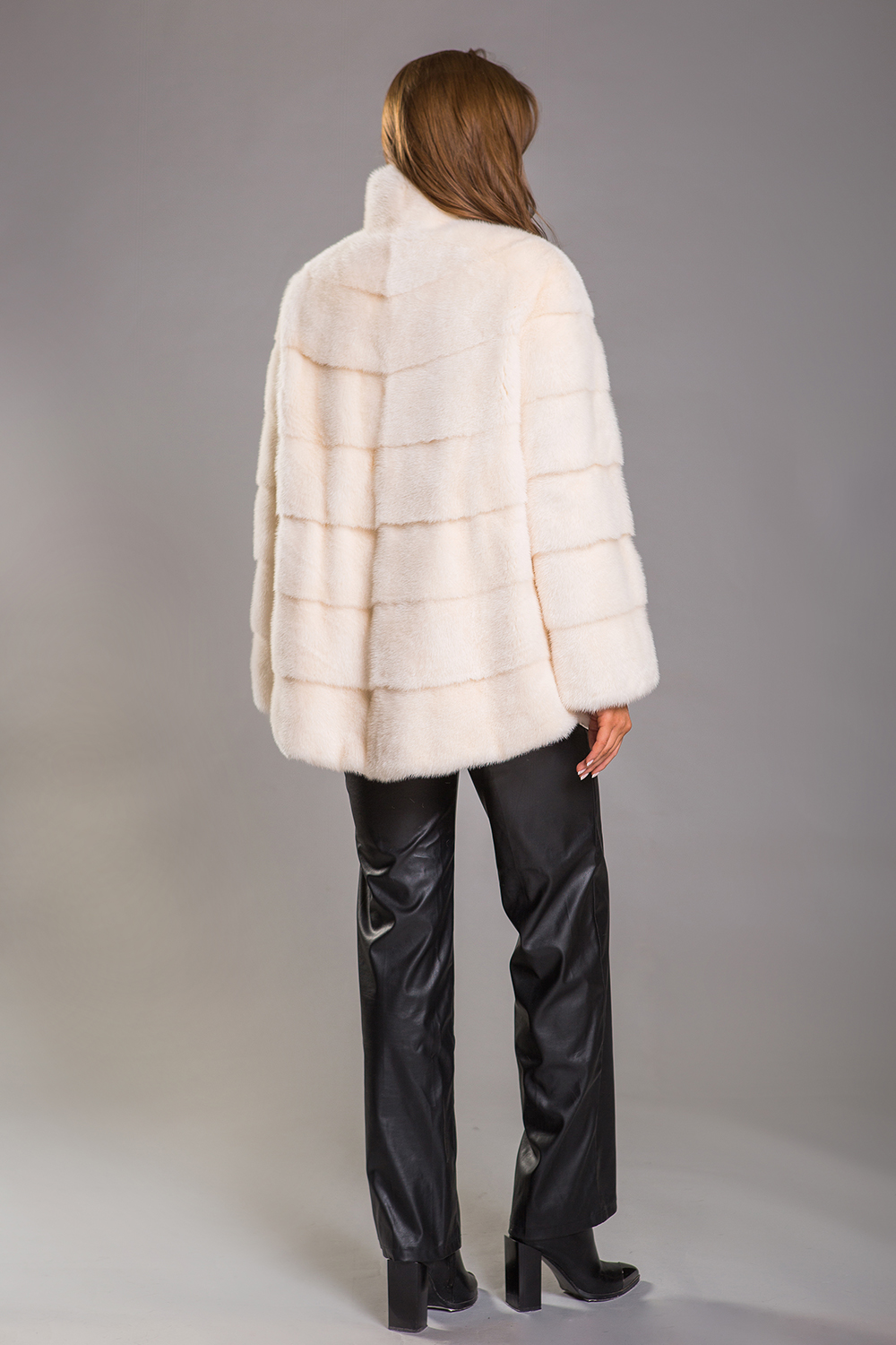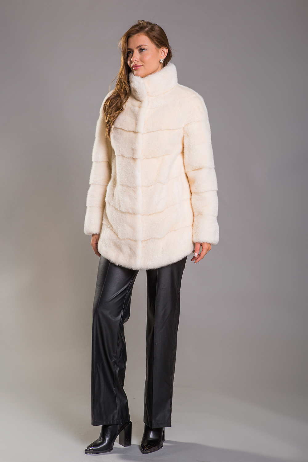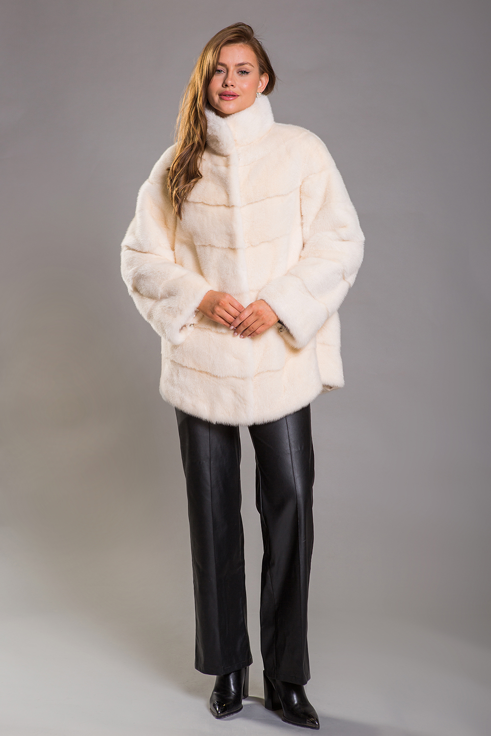 Эта куртка, созданная из натурального меха норки, станет вашим новым фаворитом в гардеробе. Воротник-стойка придаёт образу утончённость, а стильный и элегантный вид — крой с диагональной выкладкой пластин и поперечной укладкой рукавов.