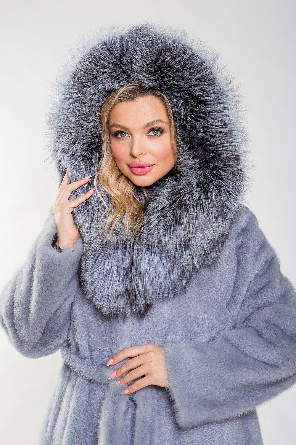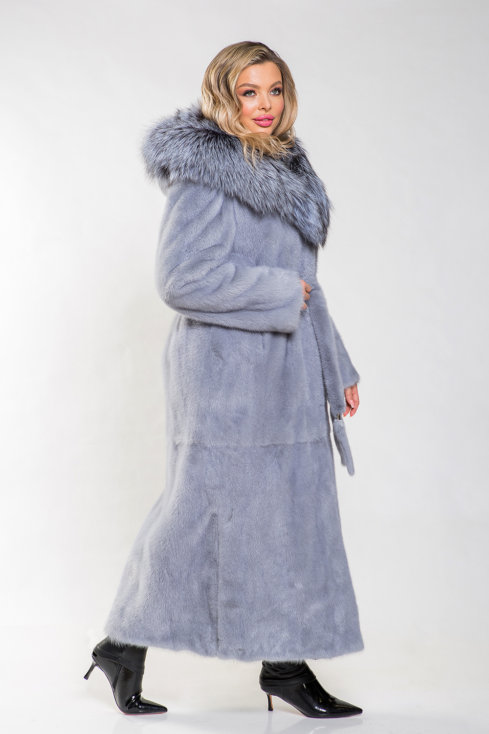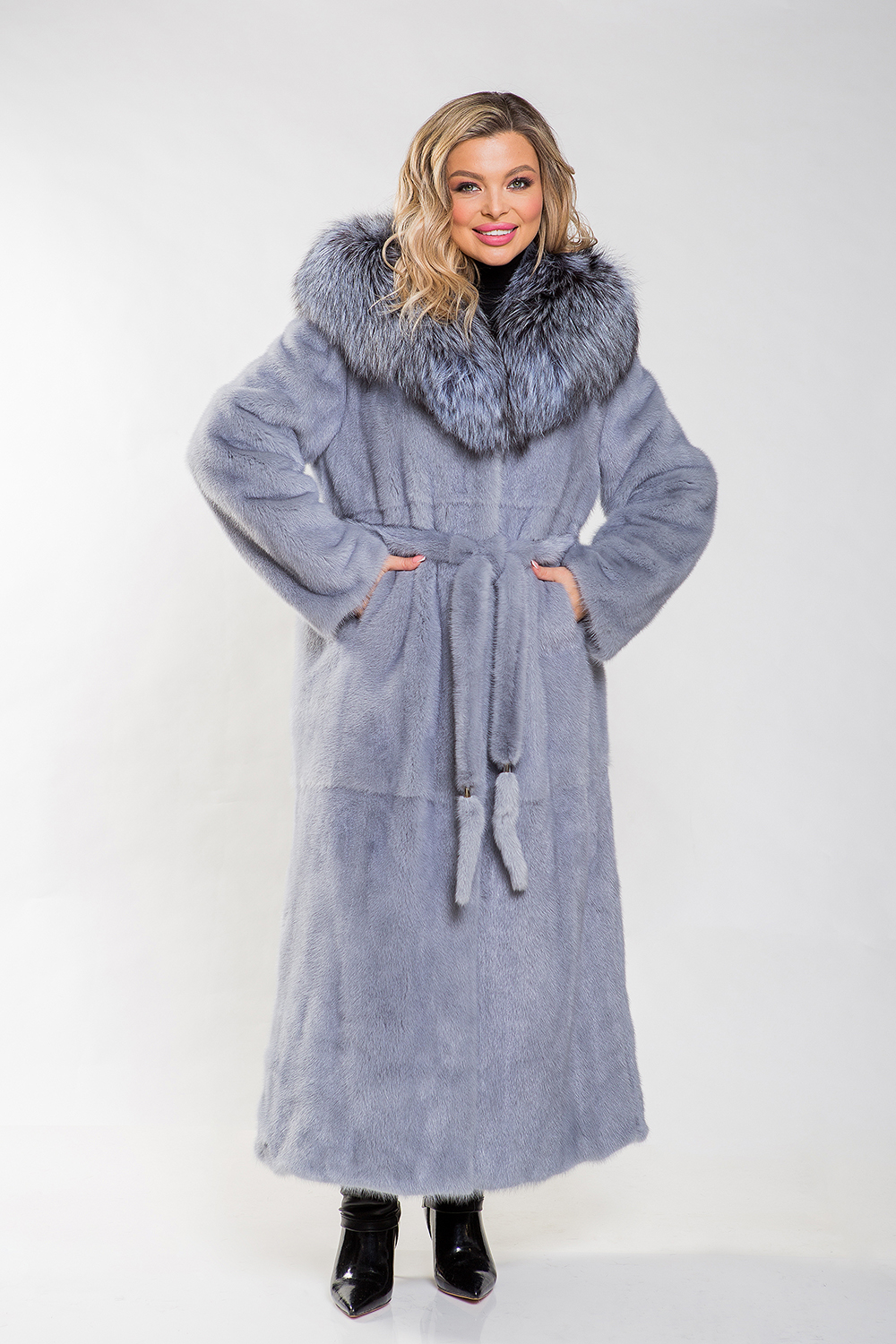 Норковое пальто с капюшоном, украшенным мехом лисы, — это изысканный и роскошный вариант верхней одежды. Крой модели выполнен из пластин с элементами роспуска, что придаёт ей особую фактуру. На рукавах пальто имеются регулирующие утяжки, а по бокам — элегантные разрезы. В комплект входит пояс из норки, который подчеркивает изысканность наряда. Длина пальто составляет 135 см. Если вы стремитесь к престижному и роскошному образу, то это длинное норковое пальто — ваш идеальный выбор!