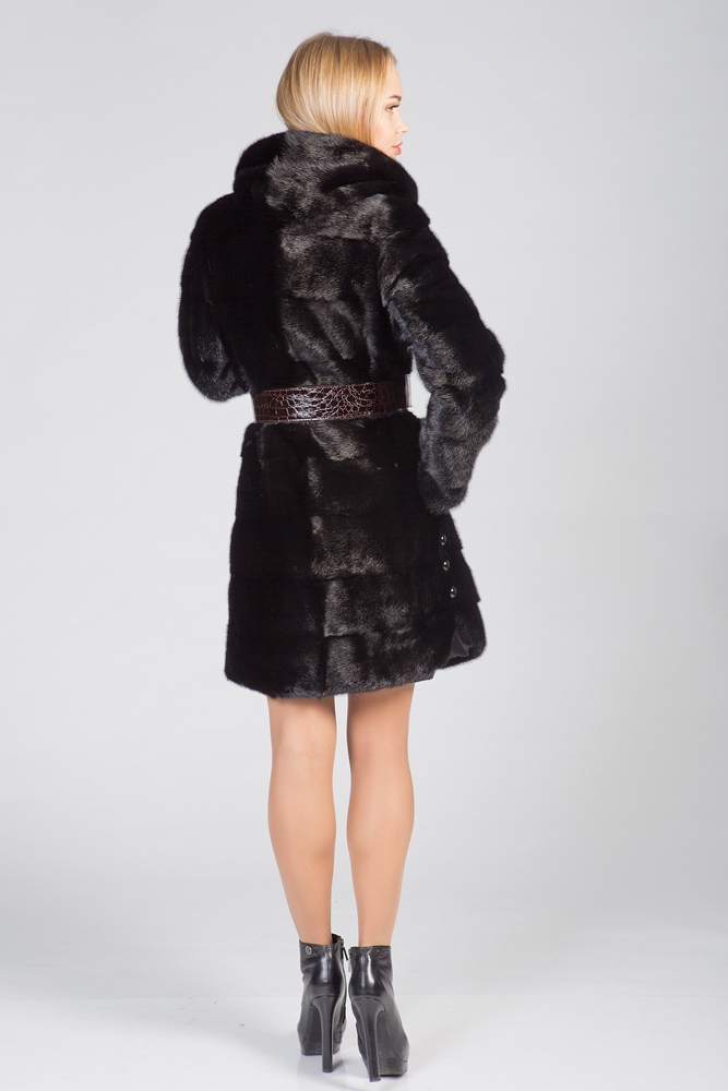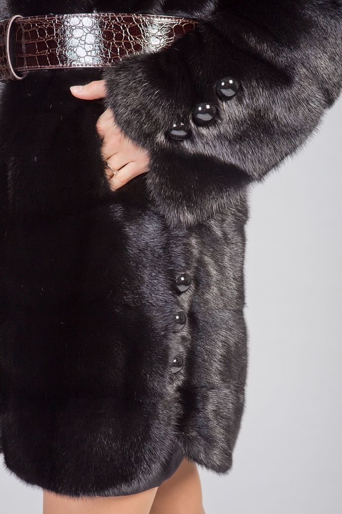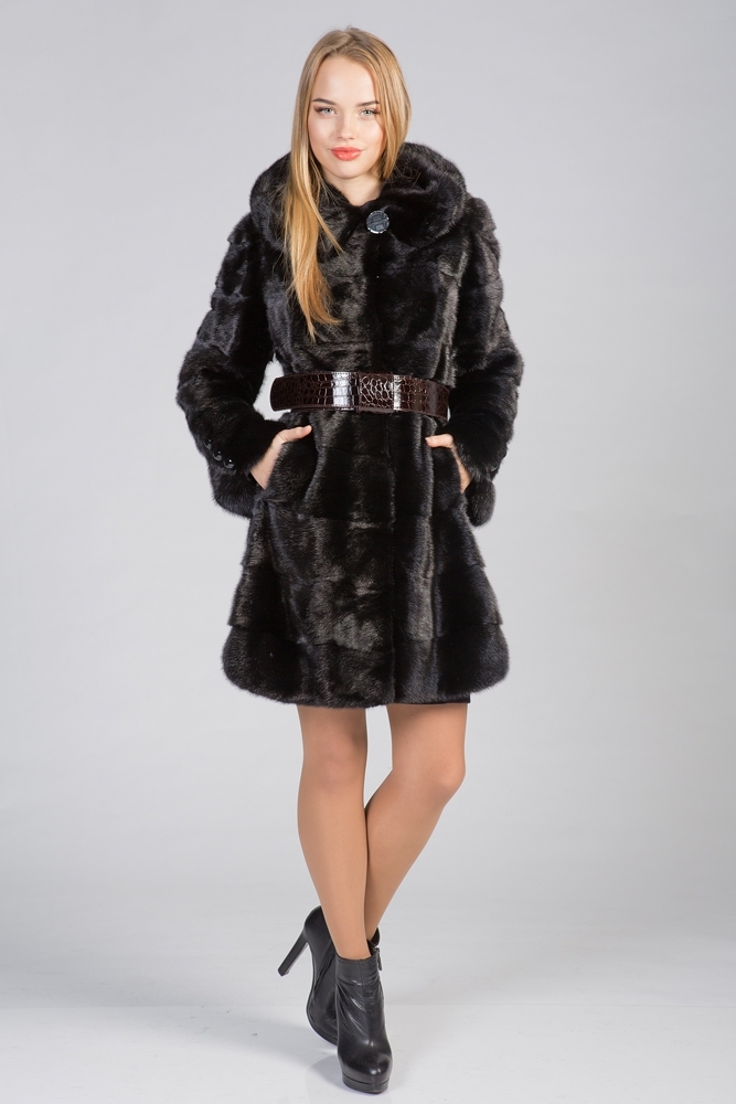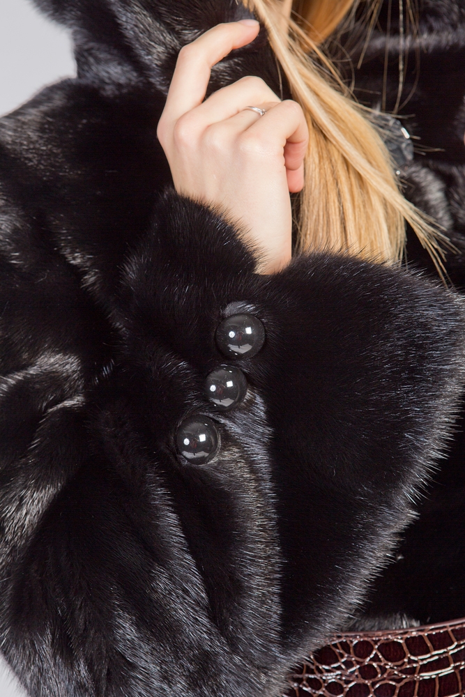 Полупальто из меха норки с капюшоном. Крой изделия - поперечная выкладка пластин. Длина шубки 90 см. Рукава и низ модели отстегиваются и шубка трансформируется в миниатюрную изящную курточку. Не каждая леди может включить в свой гардероб несколько шуб из норки. Покупка модели трансформера устраняет проблемы, позволяет менять образ, используя для этого одну модель! Будьте обворожительны в новой шубке!