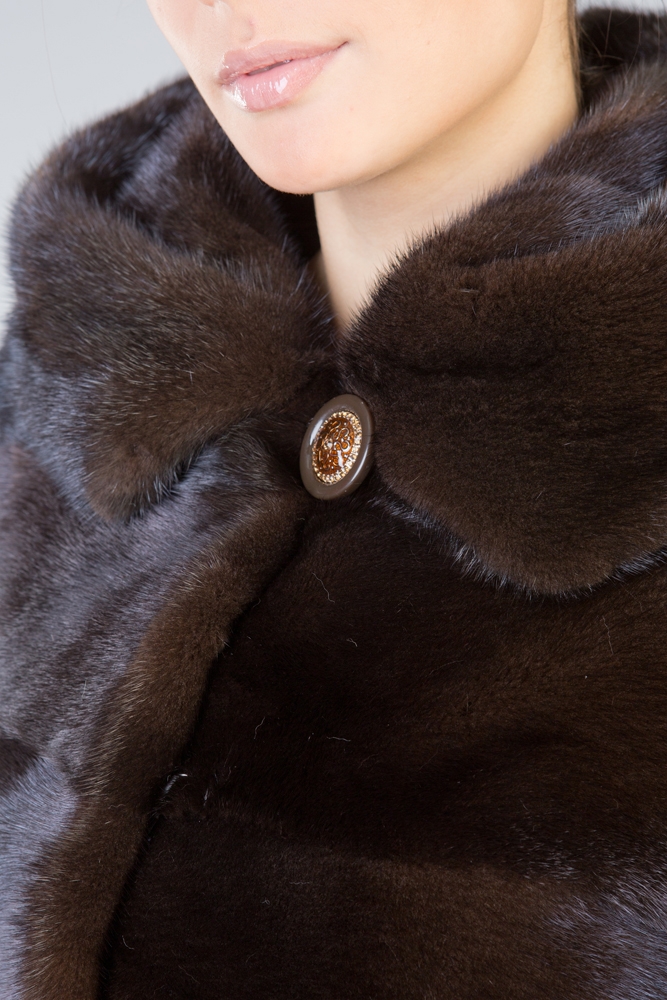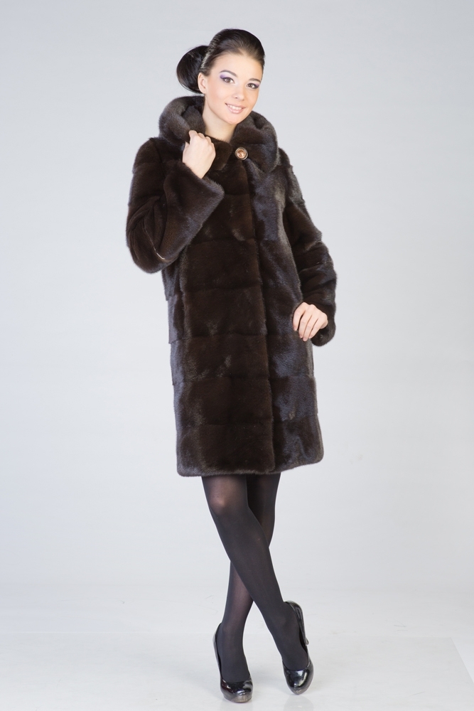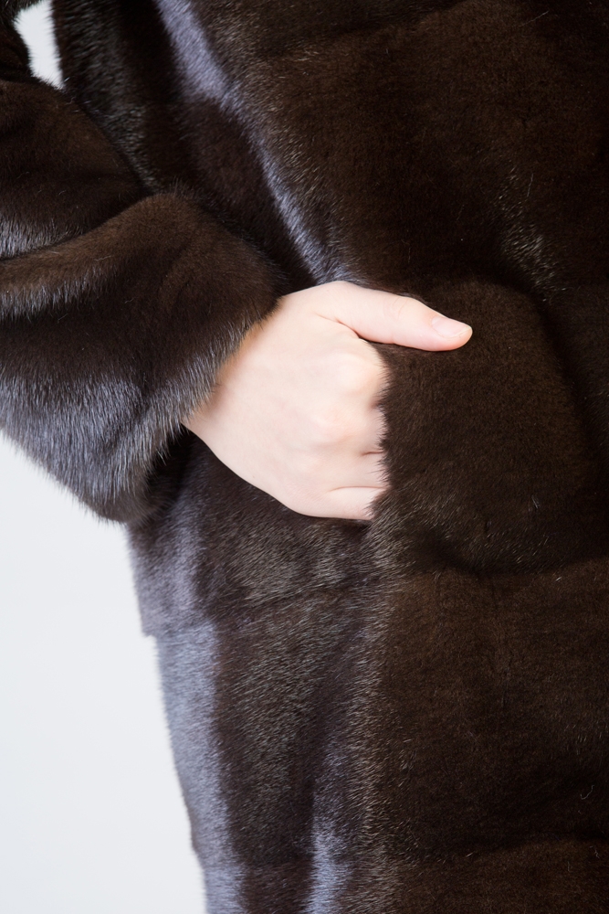 Полупальто из меха норки с капюшоном. Крой изделия - поперечная выкладка пластин. Длина шубки 90 см. Рукава и низ модели отстегиваются и шубка трансформируется в миниатюрную изящную курточку. Не каждая леди может включить в свой гардероб несколько шуб из норки. Покупка модели трансформера устраняет проблемы, позволяет менять образ, используя для этого одну модель! Будьте обворожительны в новой шубке!