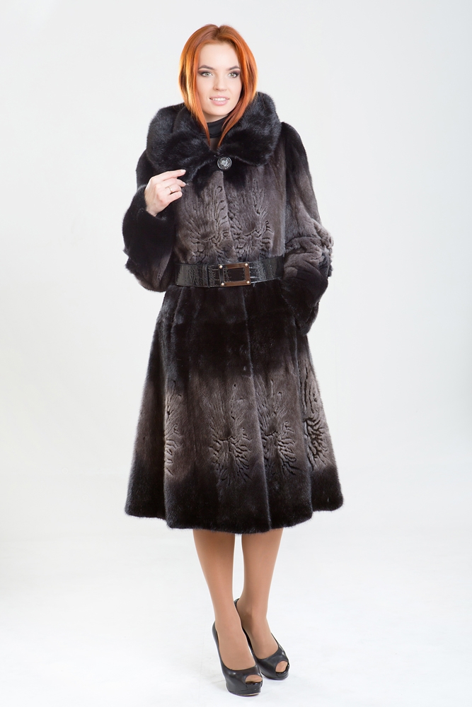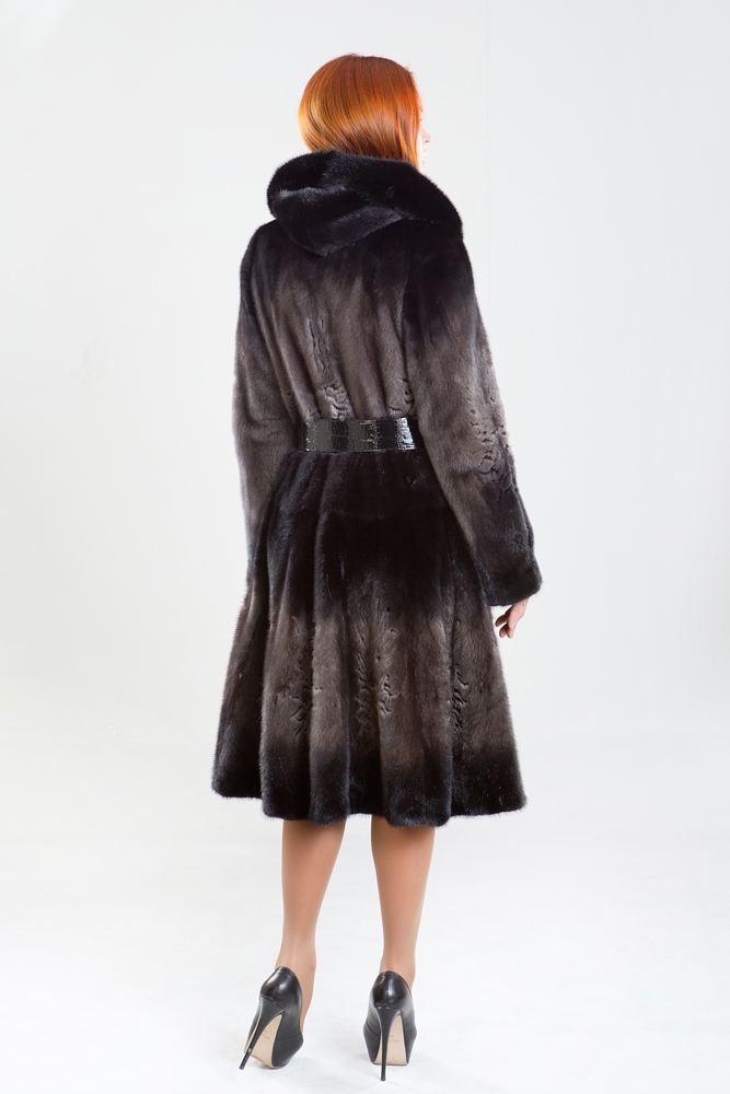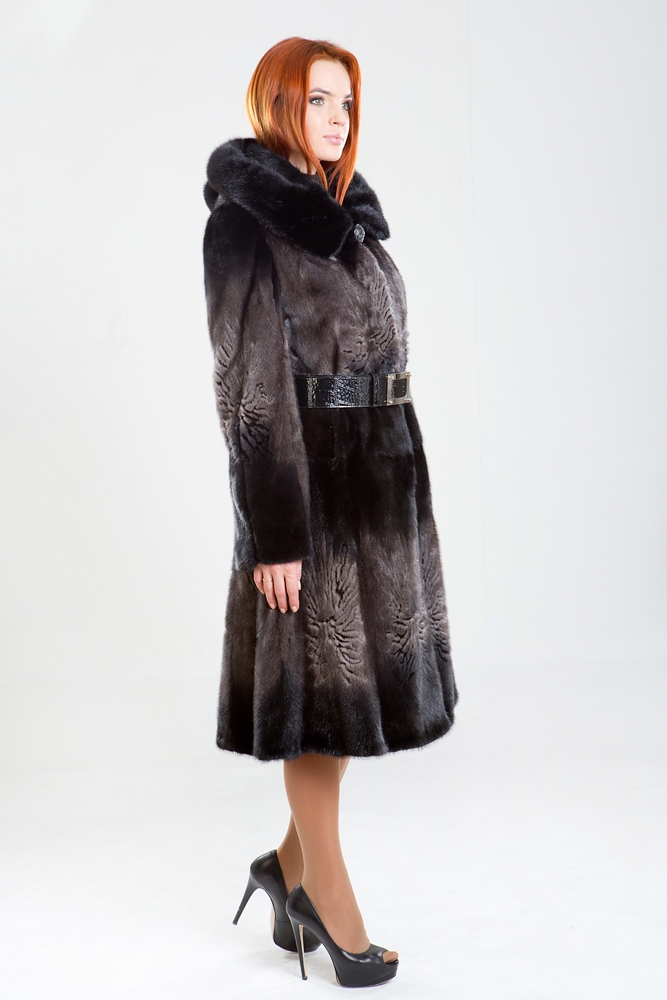Полупальто из меха норки с капюшоном. Крой изделия роспуск с добавлением пластин. Длина модели 105 см. Юбка мехового пальто расклешена и декорирована лазерной выстрижкой. Меховой пояс прилагается. Шубка с приталенным силуэтом зрительно подчеркивает стройную фигуру девушек!