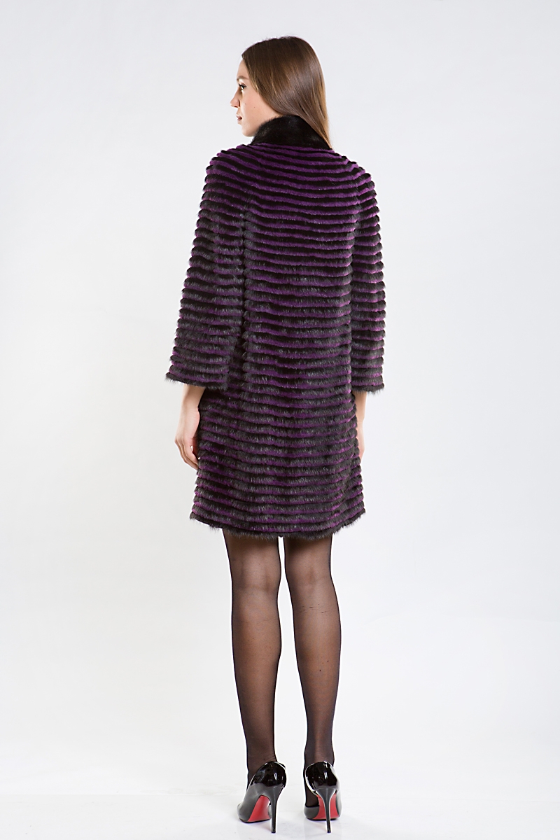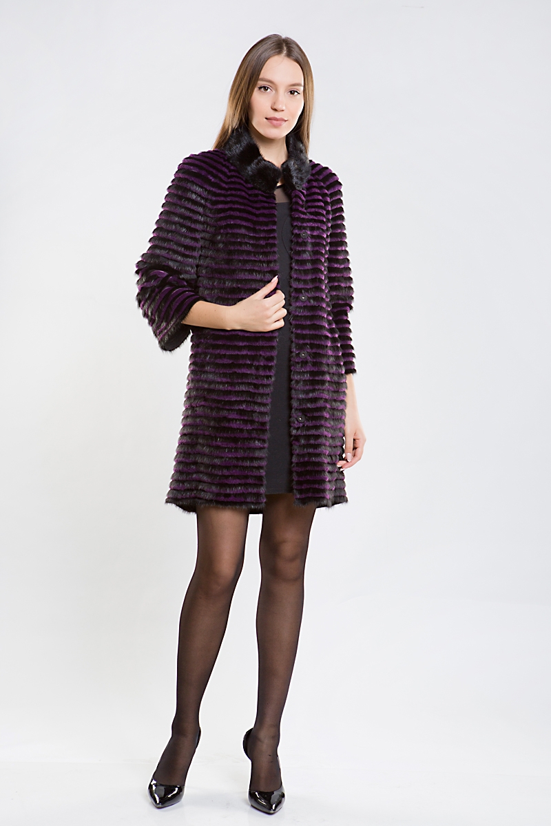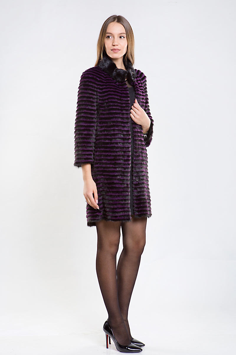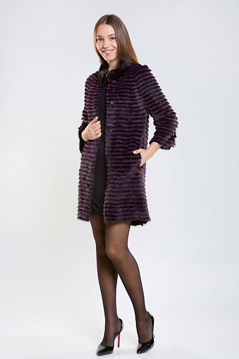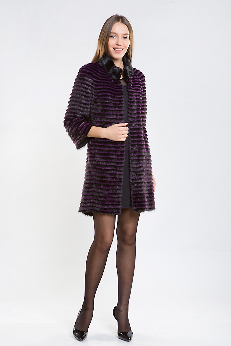 Полупальто из меха норки на трикотажной основе. Воротник стойка. Изделие дополнено мехом кролика. Модель прямого силуэта. Укороченные рукава изделия можно удачно сочетать с длинными рукавами или митенками. Такое оригинальное пальто подойдет больше для осени и весны!