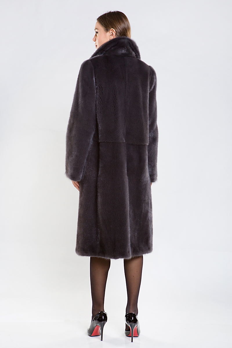 Полупальто из меха норки. Английский воротник трансформируется в классический. Крой изделия пластины. Карманы модели фиксируются магнитом. Рукава и талия оснащены регулирующими утяжками. Длина изделия 115 см. Стильная шубка великолепного цвета муссона гарантирует элегантность и утонченность образа!
