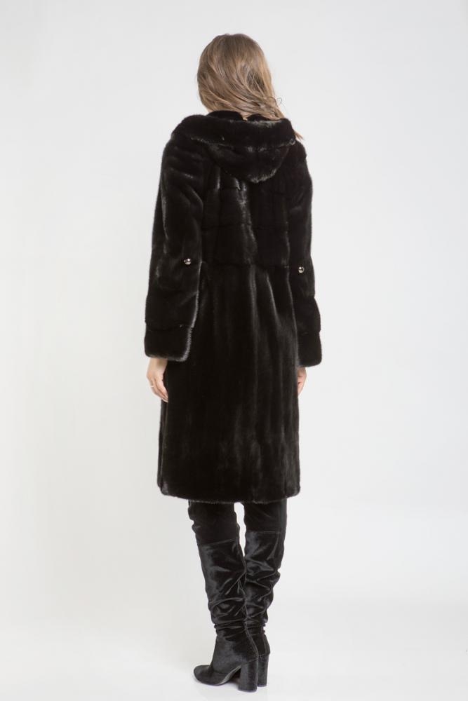 Полупальто их меха норки с капюшоном. Крой изделия комбинированный. Низ модели - сборка полотна ворсом вверх. Внутри и на рукавах изделия имеются регулирующие утяжки. Верх шубки - поперечная выкладка пластин. Рукава модели трансформируются в более укороченные. Лаконичный прямой силуэт подойдет девушкам любой комплекции и позволит чувствовать себя комфортно!