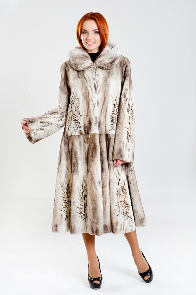 Полупальто из меха стриженной норки с капюшоном. Крой изделия роспуск с добавлением пластин. Внутри модели имеется регулирующая утяжка. Длина изделия 120 см. Меховое пальто декорировано лазерной выстрижкой. Юбка модели к низу имеет большой клеш, поэтому шубка смотрится шикарно!
