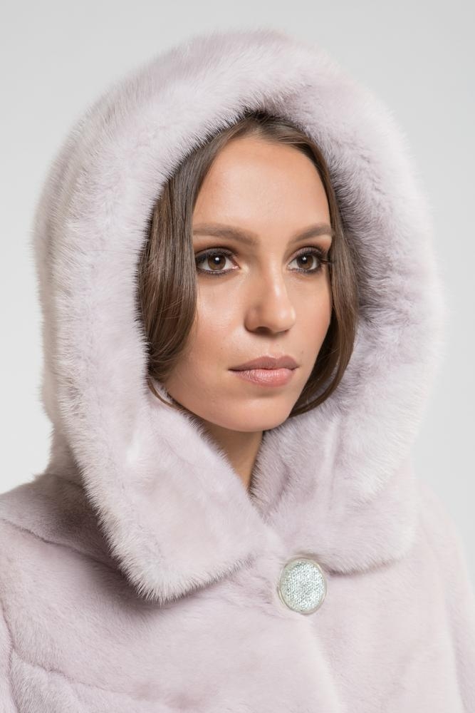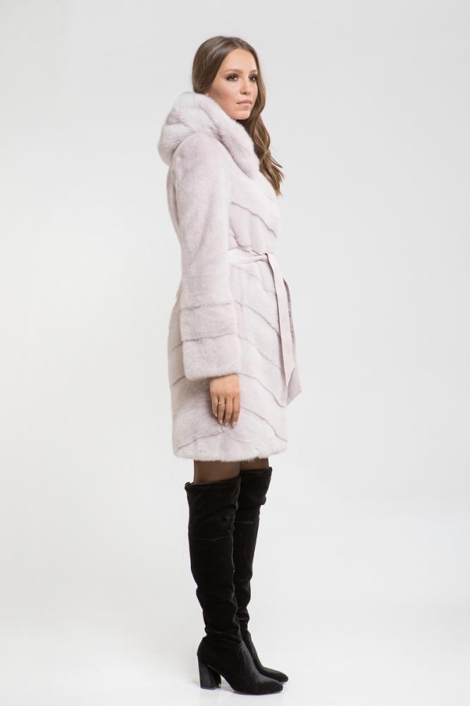 Полупальто из меха норки с капюшоном. Крой изделия - диагональная выкладка пластин. Внутри на талии и на рукавах модели имеются регулирующие утяжки. Кожаный пояс в комплекте. Такая лаконичная модель прямого силуэта подойдет девушкам любой комплекции и позволит чувствовать себя комфортно. А благородный блеск меха подчеркнет статус успешной леди!