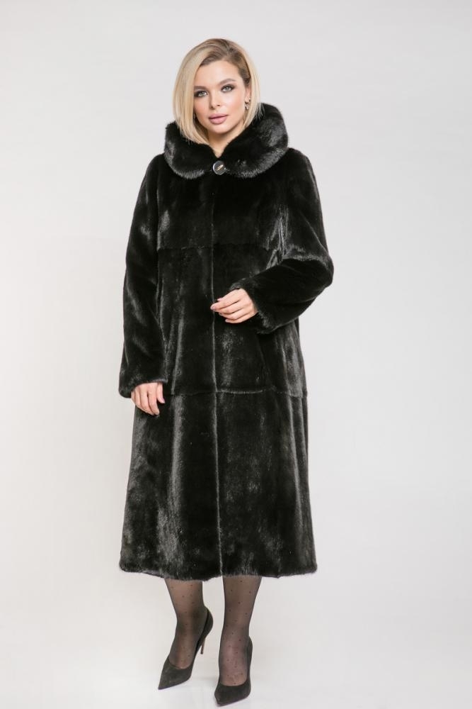 Полупальто из меха норки с капюшоном. Крой изделия пластины с добавлением роспуска. Внутри на талии и на рукавах модели регулирующие утяжки. Длинная шубка прекрасно сочетается с юбками и платьями, однако следует учесть, что длина подола не должна превышать длину шубы. Такая шубка в прекрасном качественном мехе своего рода-инвестиция!