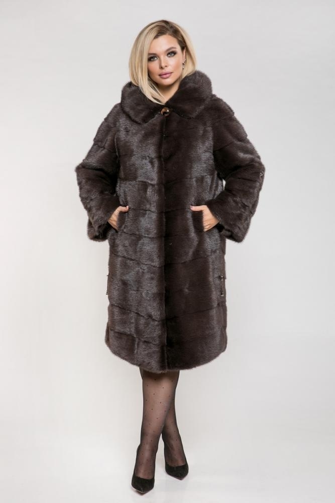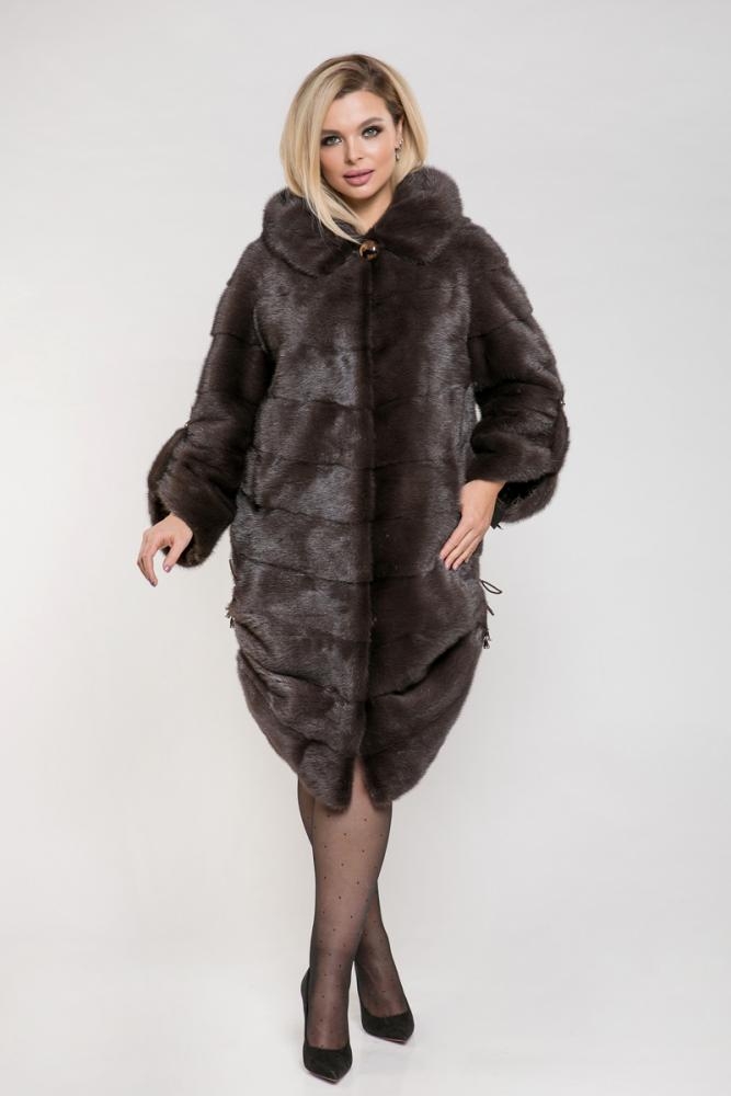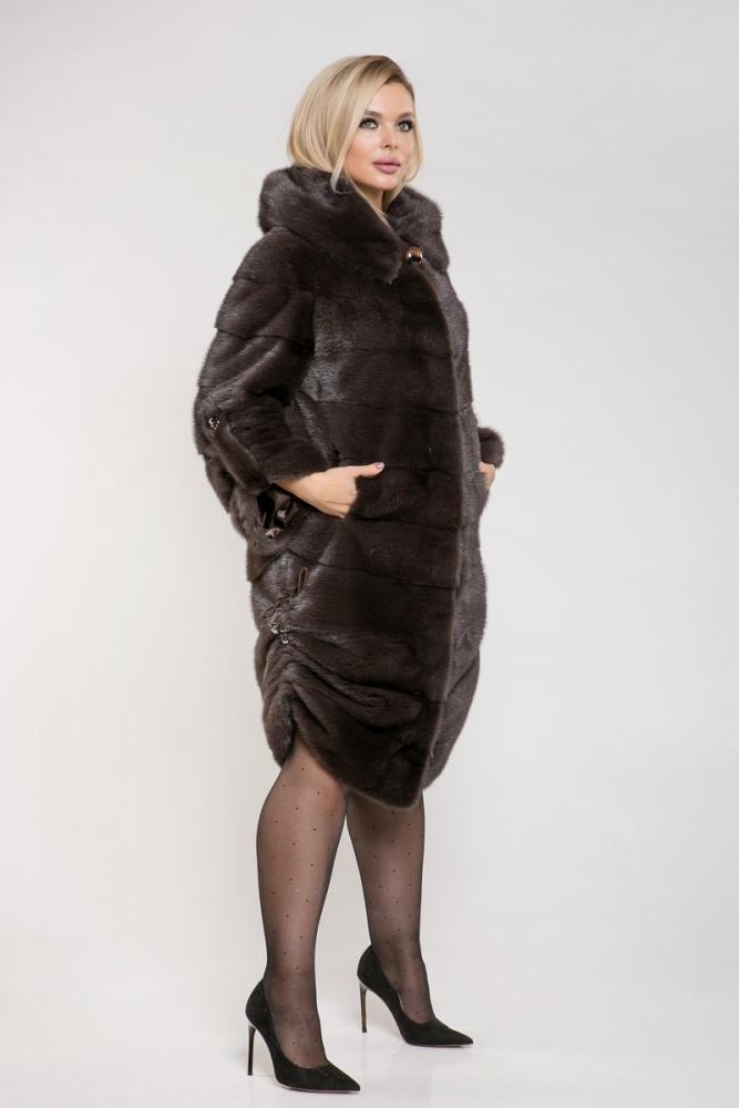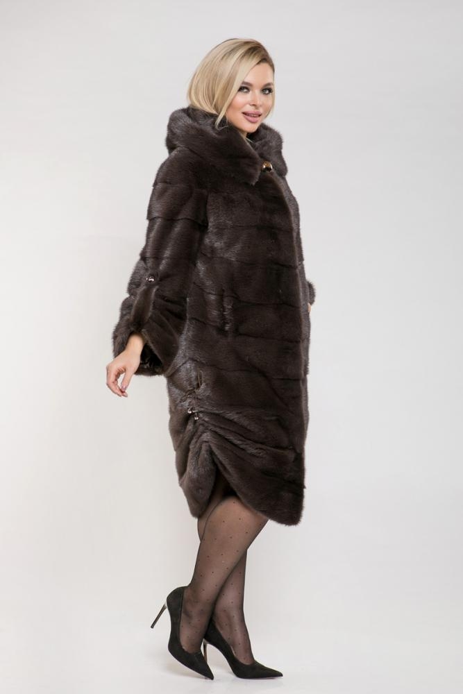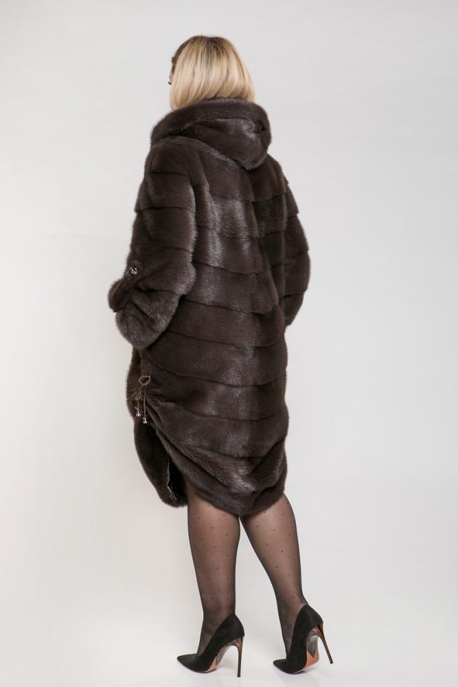 Полупальто из меха норки с капюшоном. Крой изделия-слегка диагональная выкладка пластин. Рукава и низ модели имеют регулирующие утяжки, благодаря которым шубка трансформируется в универсальную модель. При желании Вы можете распустить утяжки и получить классическую шубку! Длина изделия 110см. Такая оригинальная и эксклюзивная модель пользуется популярностью у наших прекрасных покупательниц!