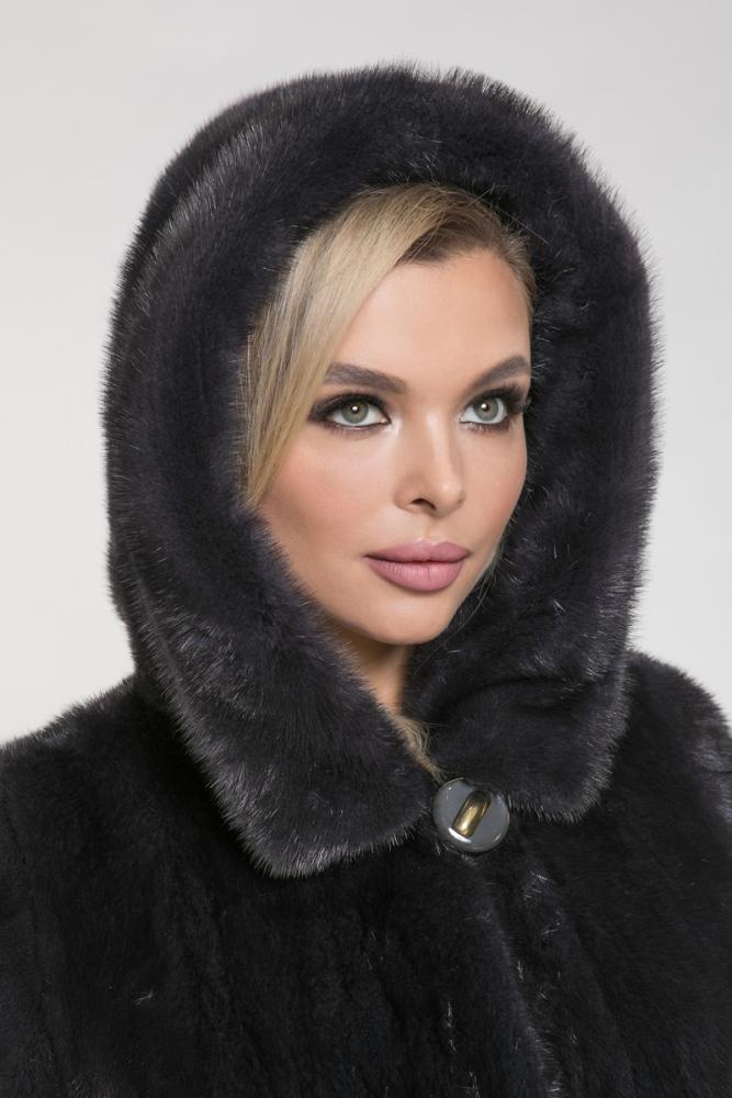 Полупальто из меха норки с капюшоном. Крой изделия в роспуск, рукава модели сшиты диагональной выкладкой пластин. Внутри на талии и на рукавах изделия есть регулирующие утяжки. Лаконичный, классический силуэт этой шубки подойдет дамам любой комплекции. Глубокий и насыщенный оттенок муссона придает модели оригинальность и выразительность!