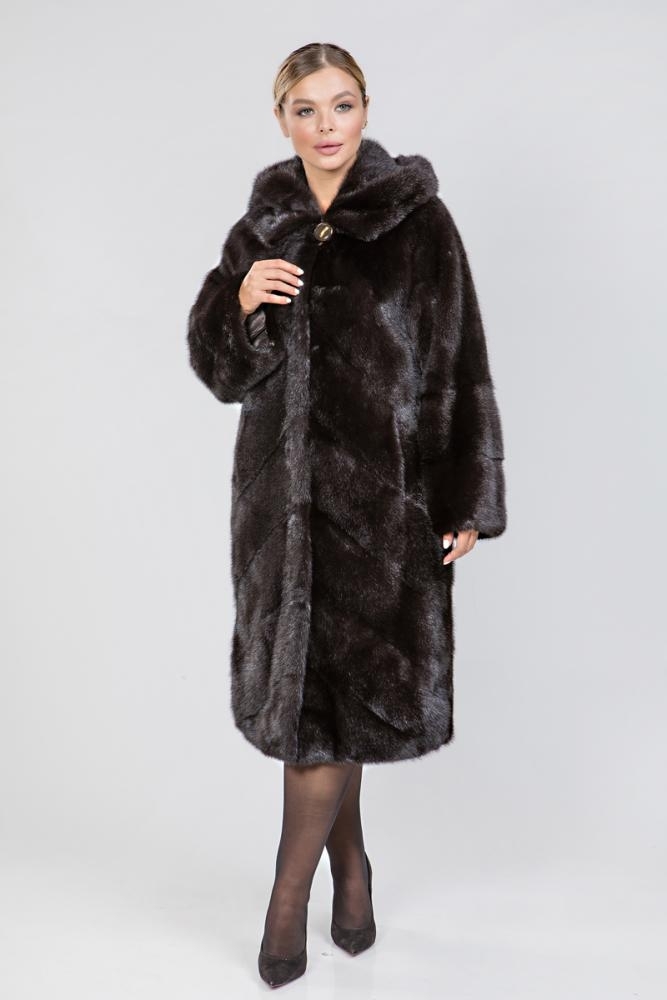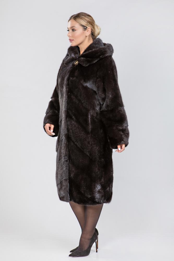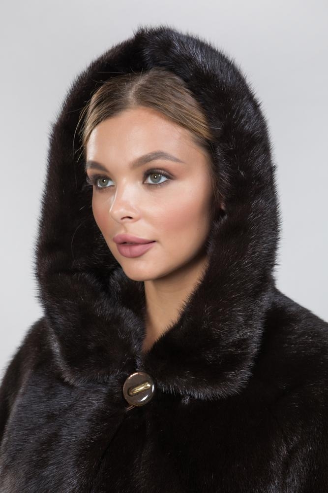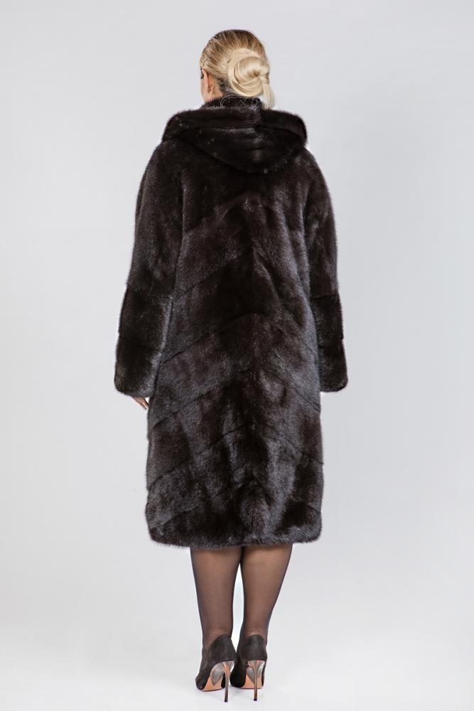 Полупальто из меха норки с капюшоном. Крой изделия диагональная выкладка пластин. На талии и на рукавах модели имеются регулирующие утяжки. Низ изделия слегка заужен. Длина модели 115 см. Лаконичный дизайн шубки подойдет девушкам любой комплекции, а теплый и качественный мех будет согревать даже в суровые морозы!