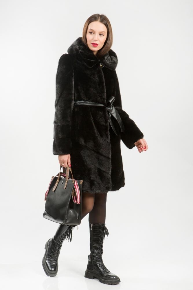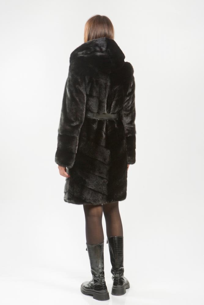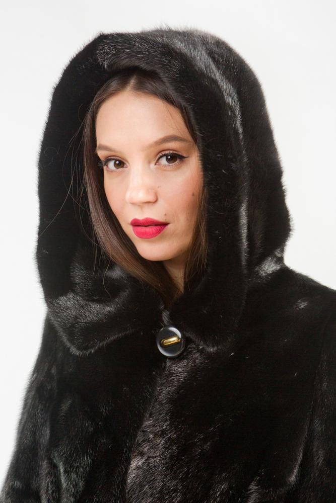 Полупальто из меха норки с капюшоном. Крой изделия диагональная выкладка пластин. Внутри на талии, на рукавах и по низу модели имеются регулирующие утяжки. Длина изделия 100 см. Рукава модели легко трансформируются в более укороченные. Удобное лекало шубки обеспечит максимальный комфорт, а выразительный черный цвет меха придаст элегантность и гарантирует образу безупречную гармонию!