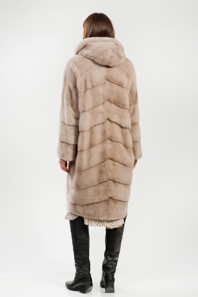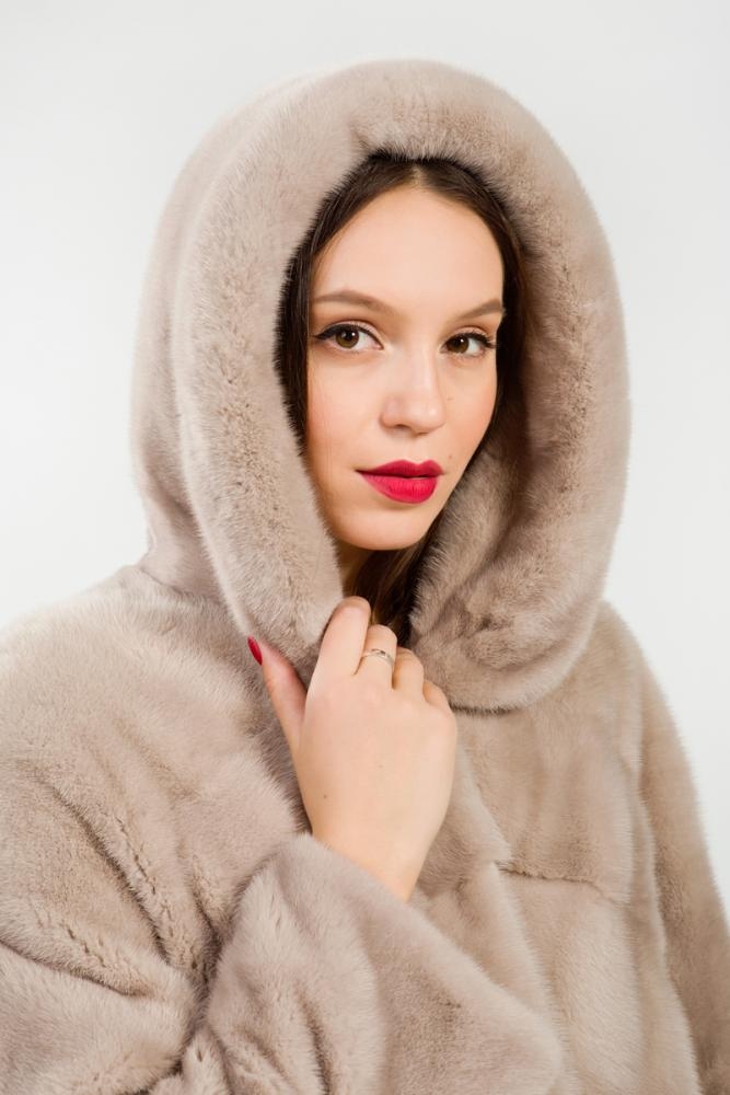 Полупальто из меха норки с капюшоном. Крой изделия диагональная выкладка пластин. На рукавах модели есть регулирующие утяжки. Длина изделия 110 см. Такая шубка в светлых тонах циркона является замечательным вариантом для тех, кто не хочет хандрить в пасмурные морозные дни, а предпочитает радовать себя привлекательными луками, поднимающими настроение! Тем более светлая шубка всегда освежает и омолаживает образ! Нет в наличии!