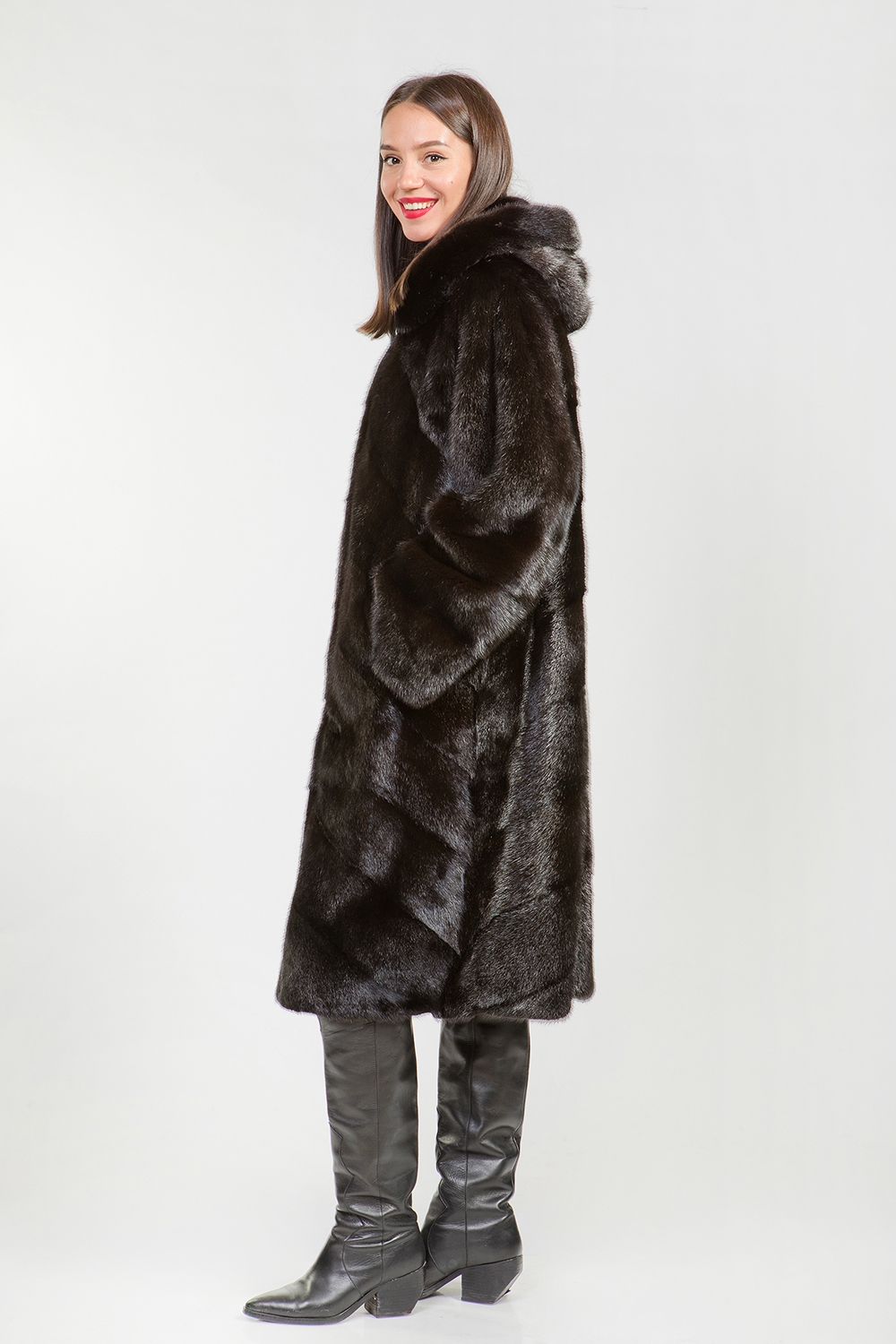 Полупальто из меха норки с капюшоном. Крой изделия диагональная выкладка пластин. Модель оснащена регулирующими утяжками на рукавах и на талии. Длина изделия 115 см. Такое удлиненное меховое пальто не ограничивает в выборе одежды, аксессуаров, обуви. И идеально соответствует климатическим условиям нашего региона. Очень теплая и комфортная шубка!!!