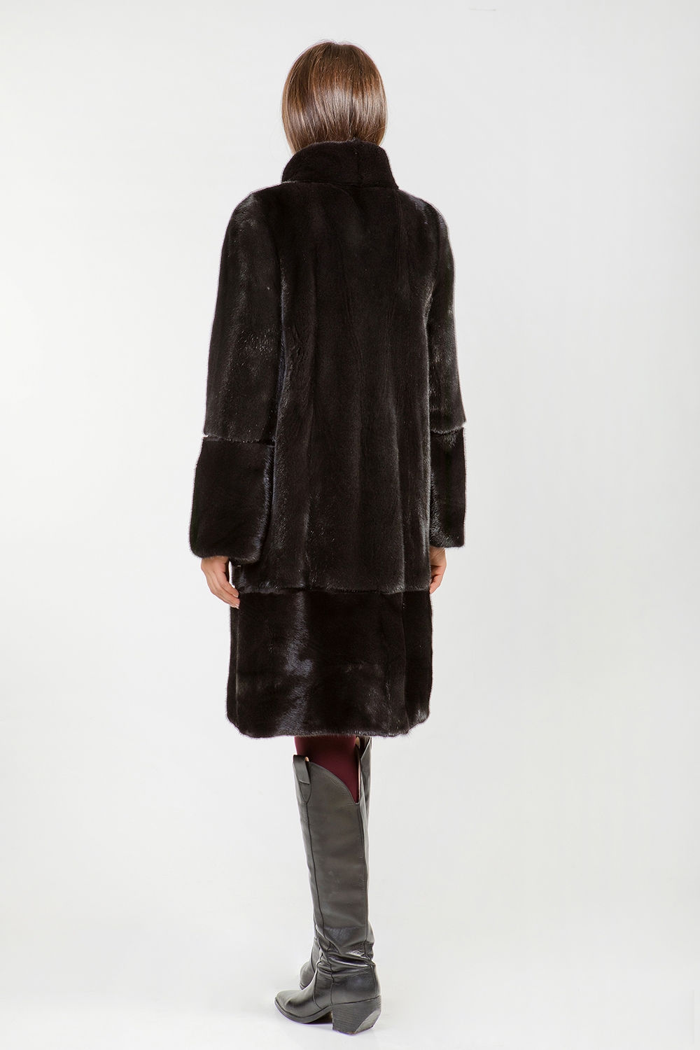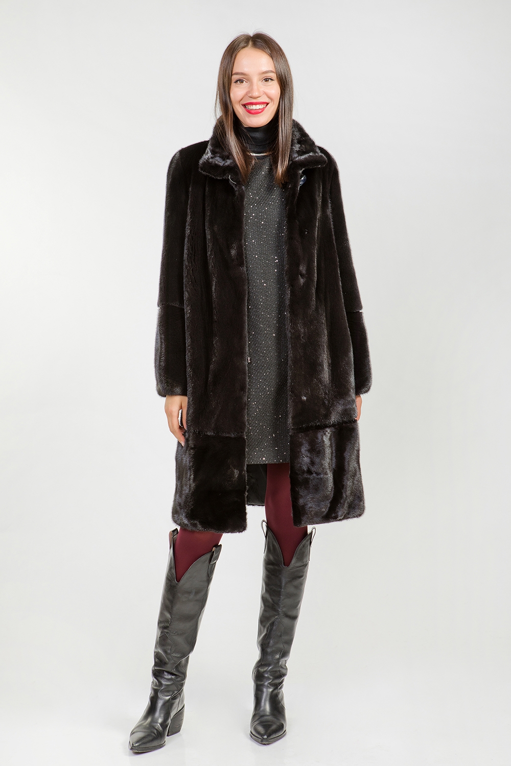 Полупальто из меха норки высокого качества. Воротник модели стильная стойка. Крой изделия роспуск с добавлением пластин. Модель оснащена регулирующими утяжками по низу, на рукавах и в зоне талии. Длина изделия 105 см. Изящное меховое пальто обладает эстетическими достоинствами и обеспечит образу престижность!