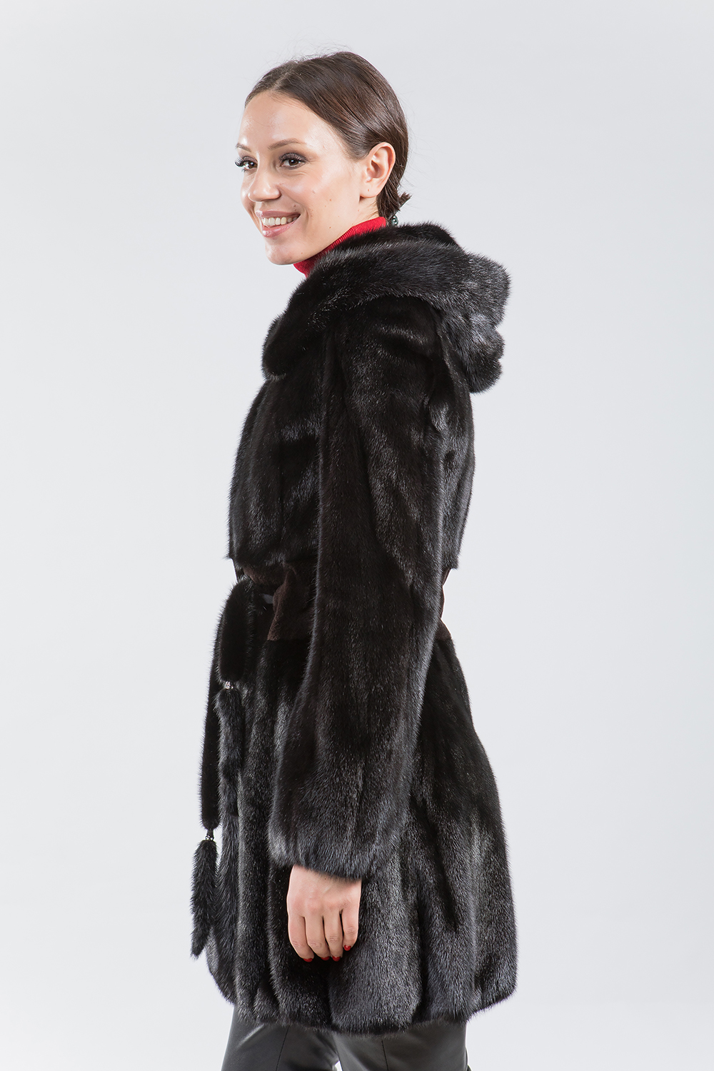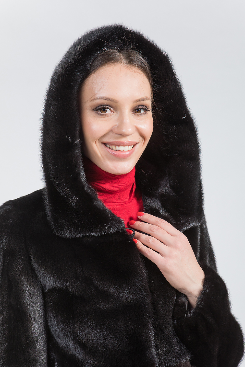Норковое полупальто с капюшоном — это стильная и эффектная модель, которая не оставит равнодушной ни одну модницу. Рукава и низ изделия слегка собраны, что придает образу особую легкость. Длина полупальто составляет 90 см, а на талии имеется вставка из стриженой норки, которая выгодно подчеркивает стройность фигуры. Завершает образ изящный пояс, который не только делает шубку более привлекательной, но и придает ей презентабельность. Эта модель — настоящий подарок для молодых и уверенных в себе женщин!