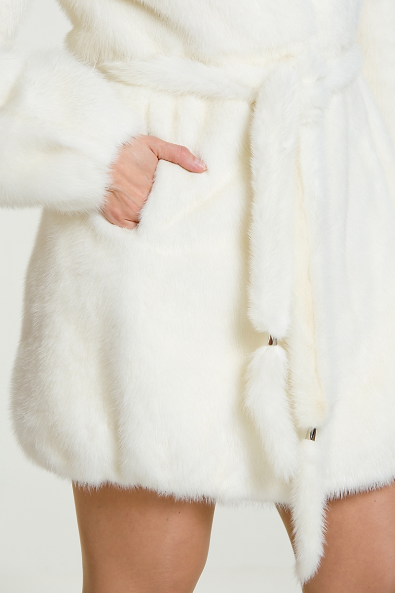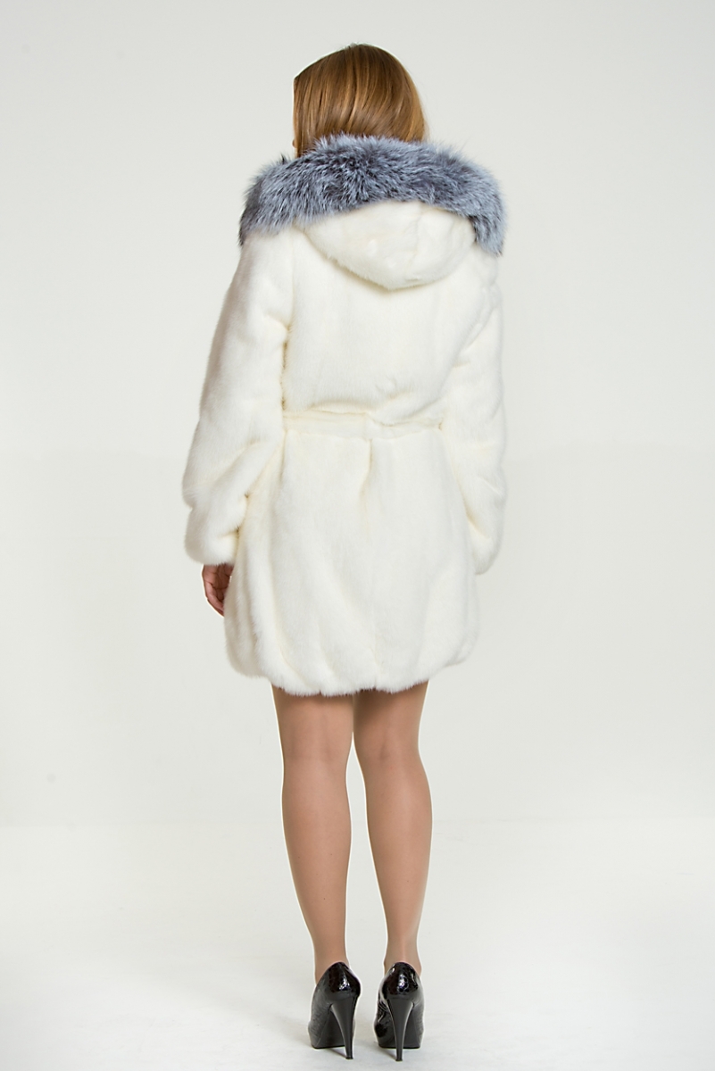 Полупальто из меха норки. Капюшон изделия декорирован мехом шикарной лисы. Крой модели роспуск с добавлением пластин. Низ шубки слегка присобран. Длина изделия 90 см. Модель дополнена поясом, позволяющим подчеркнуть стройность фигуры! Шубка придает луку не только кокетливость, но и презентабельность!