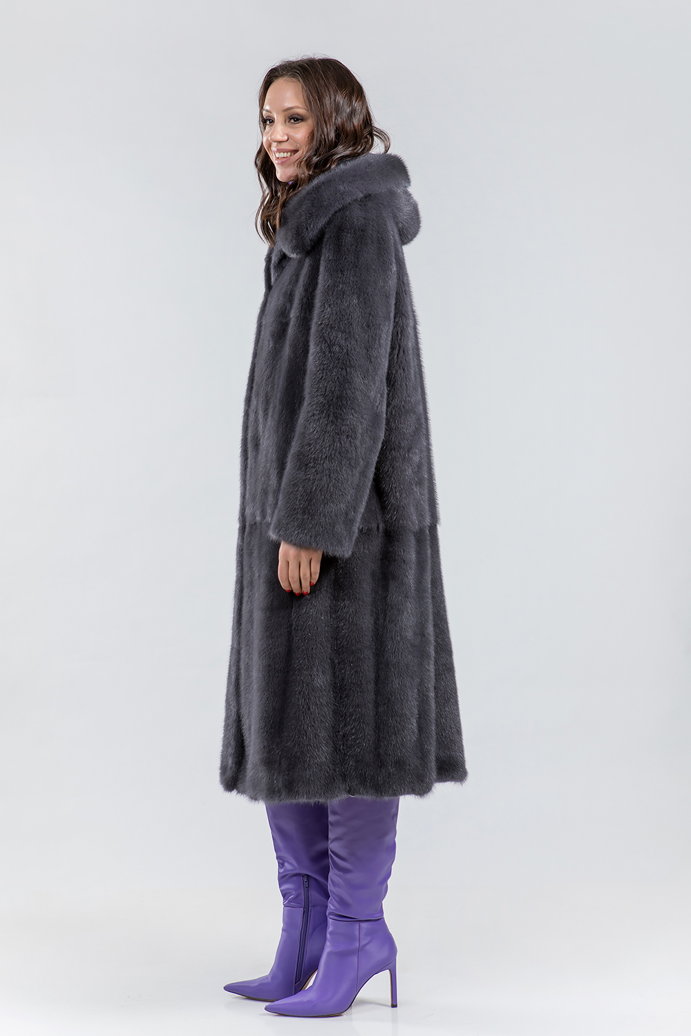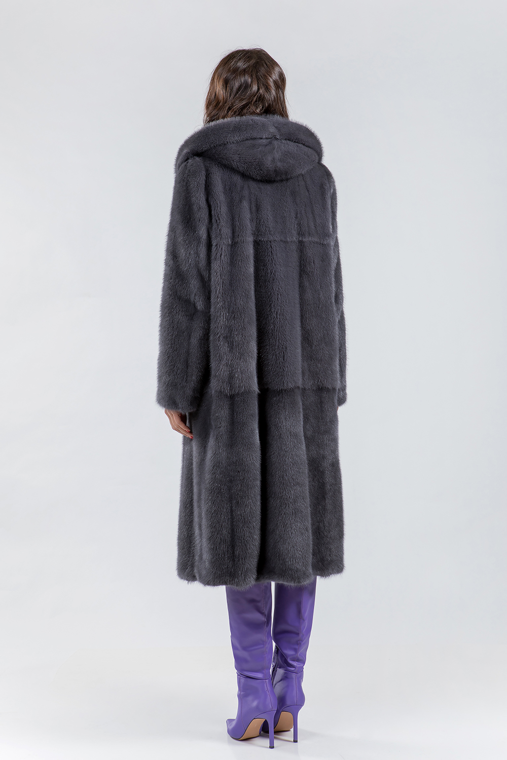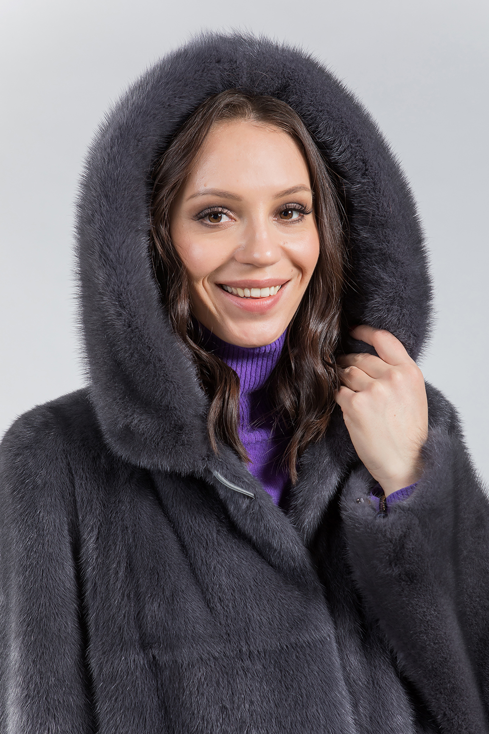 Полупальто из меха норки с капюшоном. Крой изделия пластины с добавлением роспуска. Модель оснащена регулирующими утяжками в зоне талии, на рукавах и по низу изделия. Длина шубки 120 см. Модель классического силуэта-универсальный вариант! Профессиональные стилисты считают такое меховое пальто безошибочным выбором и гарантируют элегантность!