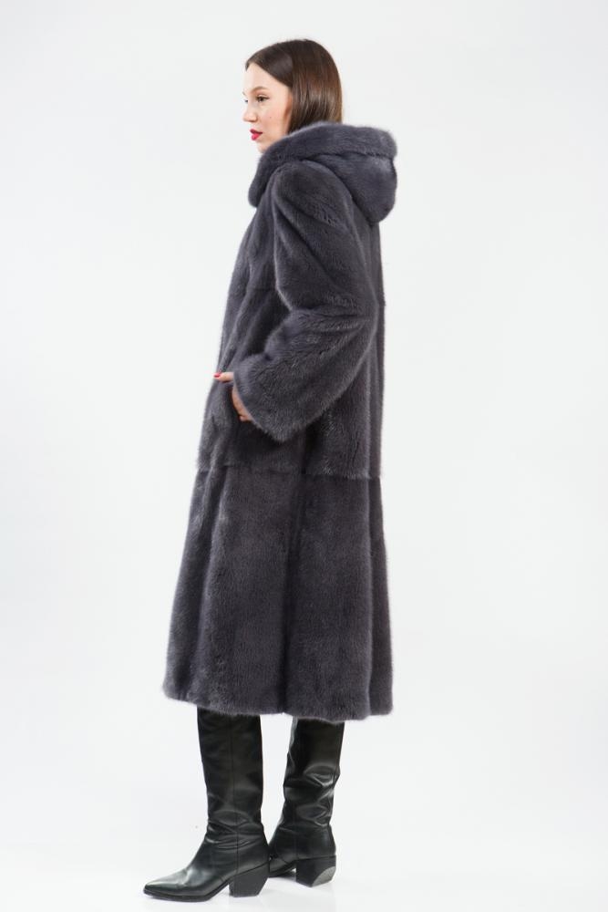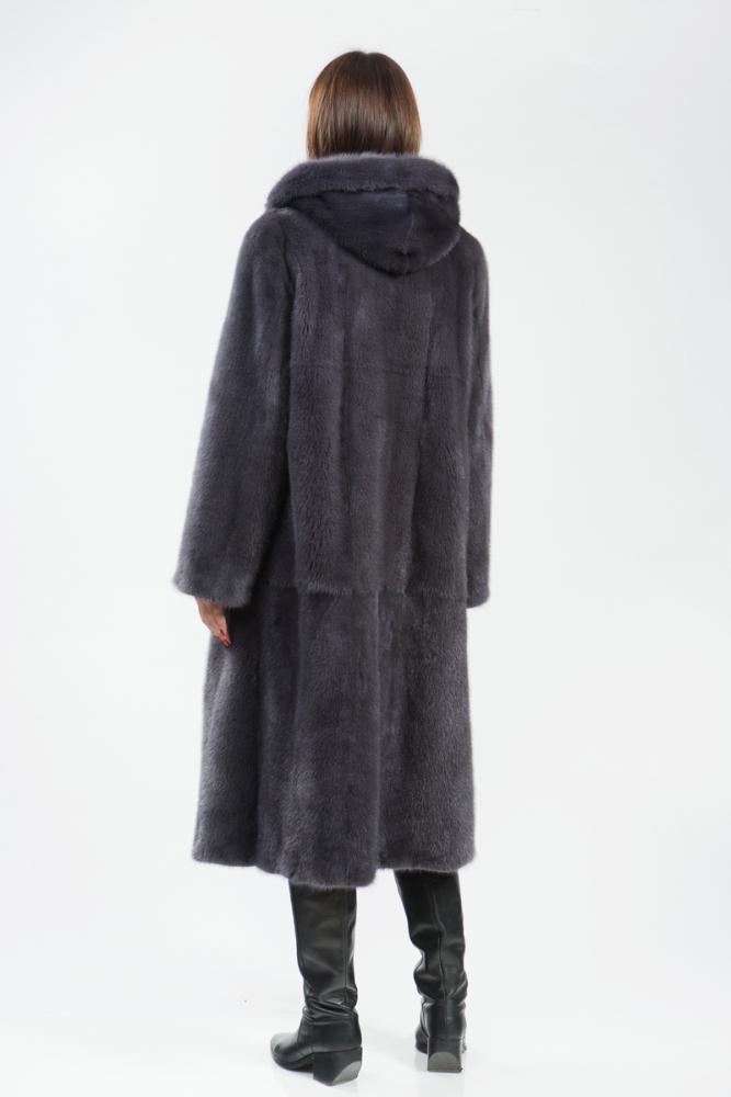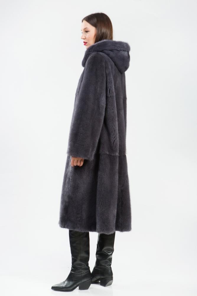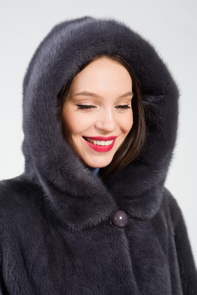Пальто из меха норки с капюшоном. Крой изделия пластины. Внутри на талии и на рукавах модели имеются регулирующие утяжки. Длина изделия 120 см. Такая шубка хорошо сидит на любой фигуре и подойдет девушкам от 48 размера до 60. Универсальный вариант! Профессиональные стилисты меховой индустрии считают классический силуэт безошибочным вариантом!