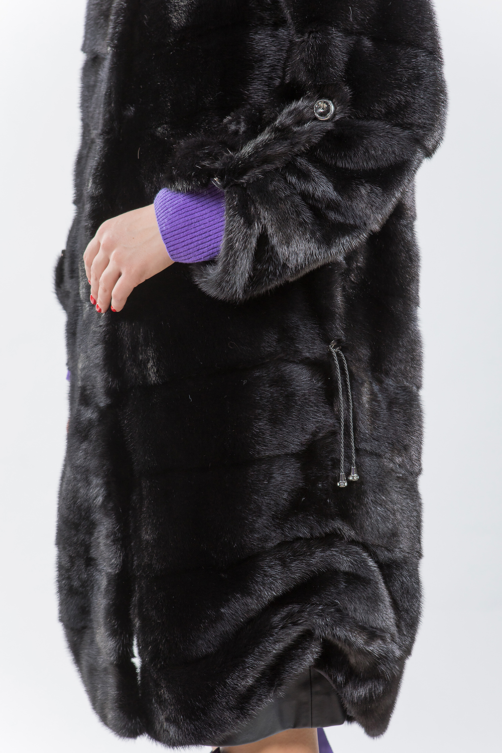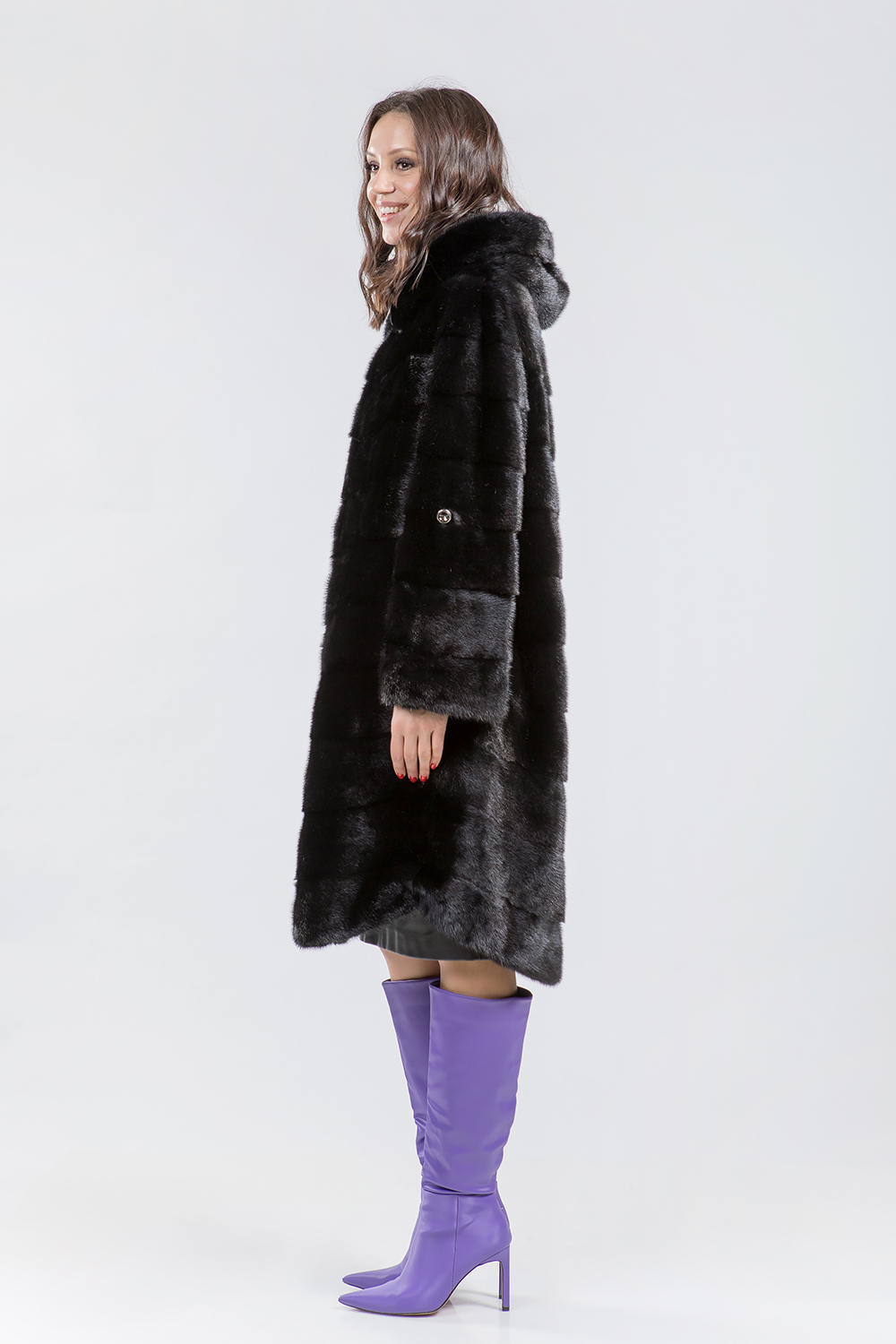 Полупальто из меха норки с капюшоном. Крой изделия-слегка диагональная выкладка пластин. Рукава и низ модели имеют регулирующие утяжки, благодаря которым шубка трансформируется в универсальную модель. При желании Вы можете распустить утяжки и получить классическую шубку! Длина изделия 110см. Такая оригинальная и эксклюзивная модель пользуется популярностью у наших прекрасных покупательниц!