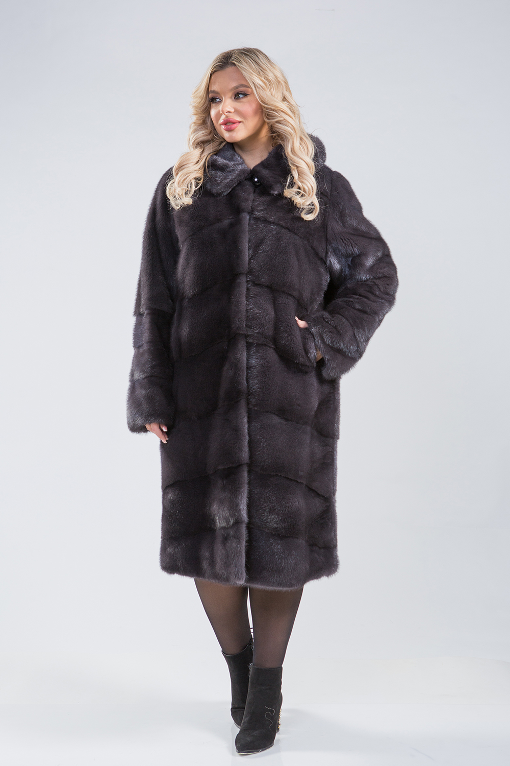 Благодаря удобному лекалу это норковое пальто станет вашим любимым, а благородный цвет муссона придаст вашему образу безупречную гармонию.