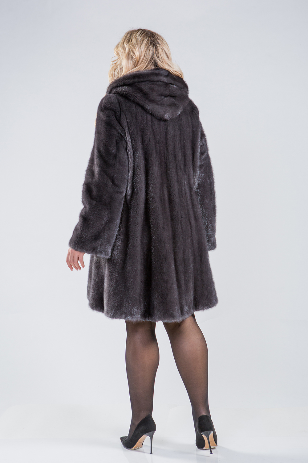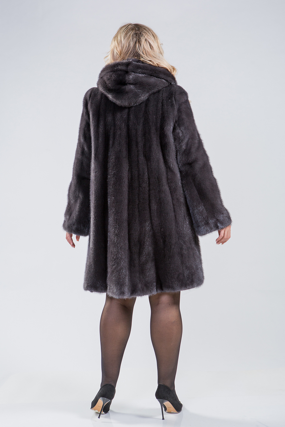 Полупальто из меха норки с капюшоном. Крой изделия роспуск. Модель оснащена регулирующими утяжками на рукавах и в зоне талии. Длина изделия 100 см. Слегка расклешенный низ модели обеспечивает шубке кокетливый вид. Благородный цвет муссона представляет неограниченные возможности для любительниц экспериментов, регулярных изменений стиля, имиджа!