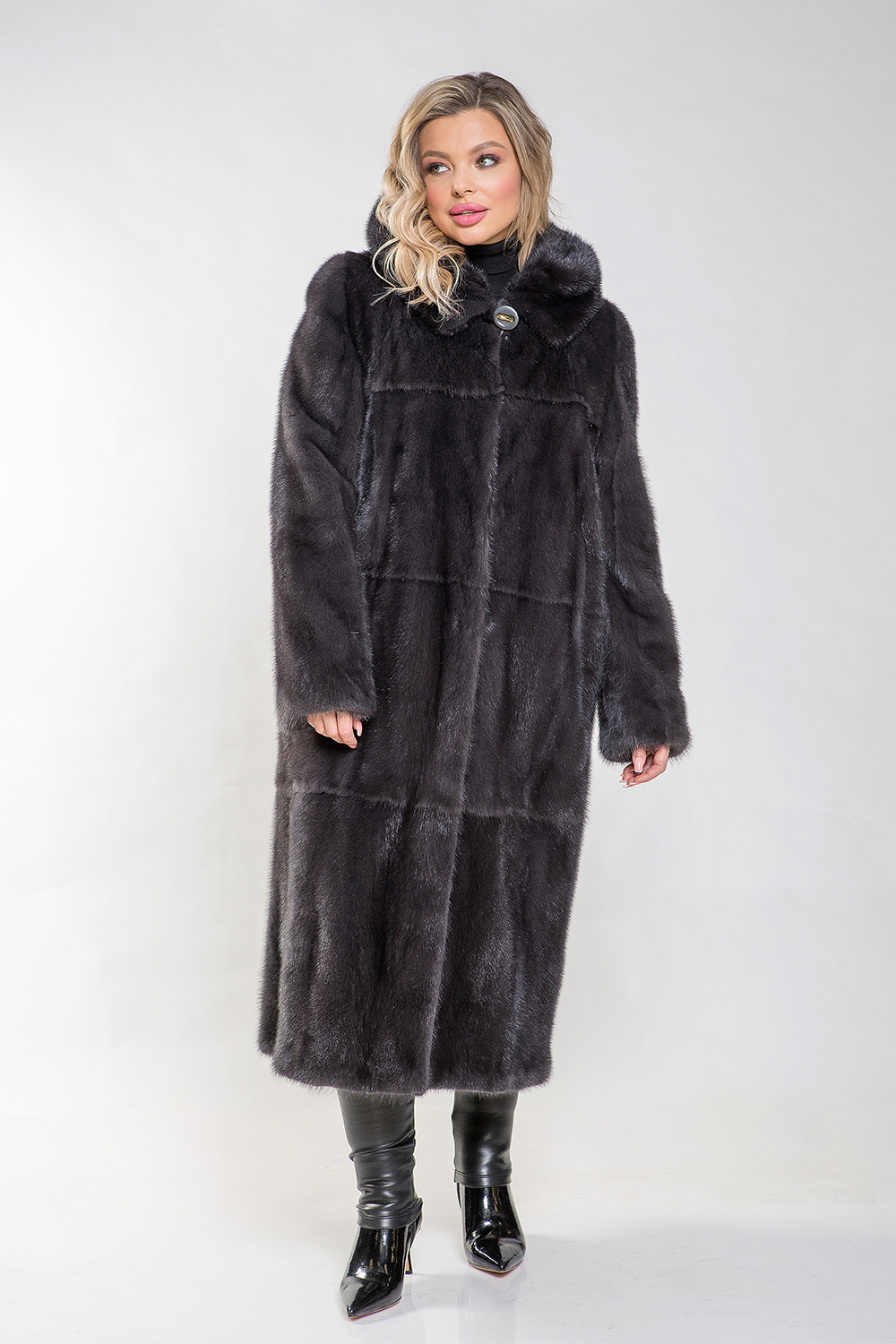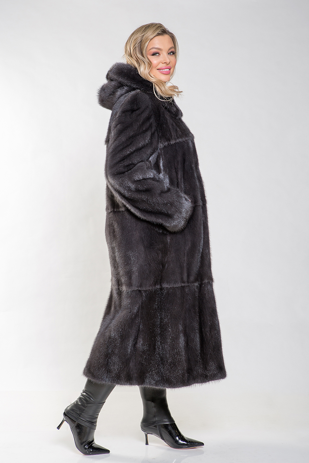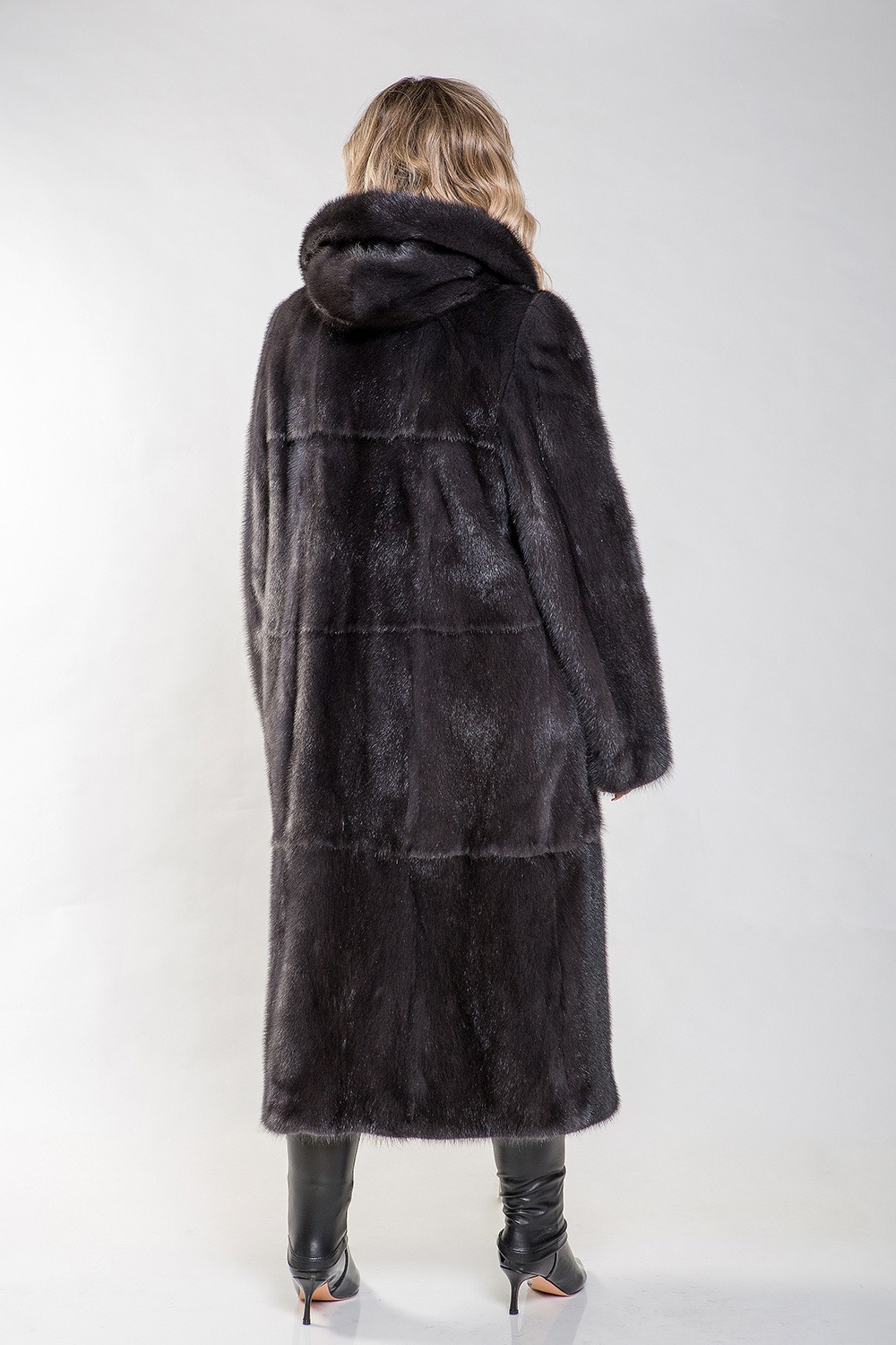 Полупальто из норкового меха с капюшоном. Крой модели выполнен из пластин с добавлением роспуска. Для удобства ношения предусмотрены регулирующие утяжки на талии и на рукавах. Длина шубы составляет 120 сантиметров. Эта модель классического силуэта станет отличным выбором для любого случая! Профессиональные стилисты утверждают, что такое меховое пальто — это беспроигрышный вариант, который поможет вам выглядеть элегантно и изысканно в любой ситуации.