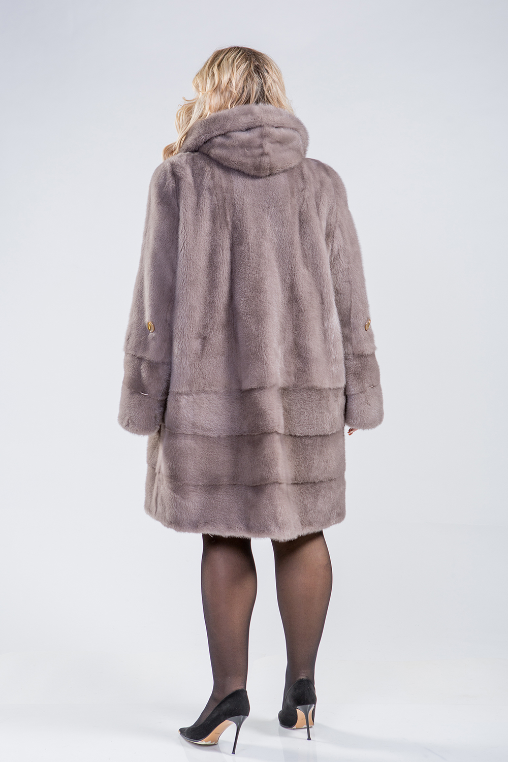 Полупальто из меха норки с капюшоном. Крой изделия комбинированный. Верх модели собран в роспуск, а низ поперечная выкладка пластин. Меховое пальто оснащено регулирующими утяжками на талии и рукавах. Длина изделия 100 см. Рукава модели трансформируются в более укороченные. Удобный крой шубки обеспечит максимальный комфорт, благородный цвет лаванды гарантирует образу безупречную гармонию!
