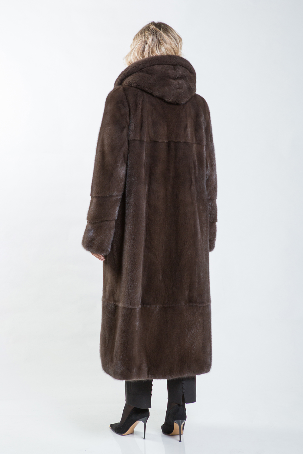 Полупальто из норки с капюшоном — это великолепное изделие, сочетающее в себе классику и элегантность. Крой модели выполнен из пластин с добавлением роспуска, что придаёт ей особый шарм.