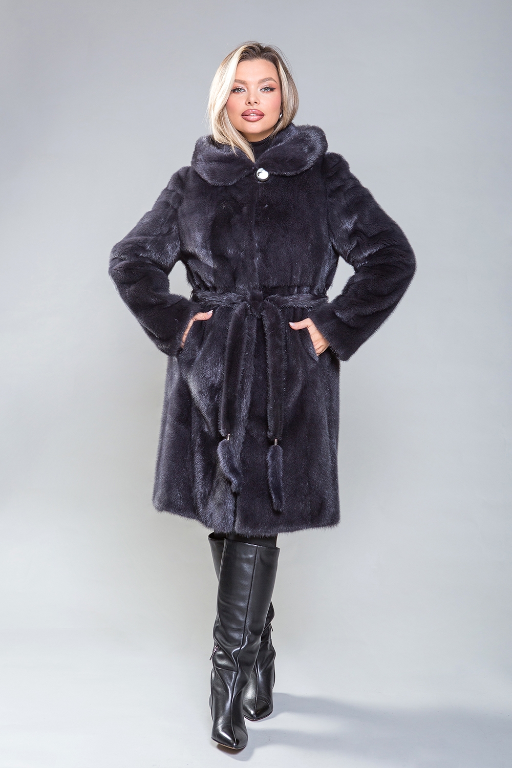 Полупальто из натурального норкового меха с капюшоном станет вашим идеальным спутником в зимние холода. Модель изготовлена из пластин с добавлением роспуска, что придаёт изделию особую мягкость и объём. Рукава полупальто оснащены регулируемыми утяжками, позволяющими укоротить их по вашему желанию. Длина полупальто составляет 100 сантиметров, что делает его универсальным выбором для женщин, ценящих элегантность и женственность. Стильный меховой пояс подчёркивает стройность и изящество фигуры, придавая образу утончённость. Эта шубка не только согреет вас в морозные дни, но и добавит уверенности в себе, подчеркнув ваше природное обаяние.