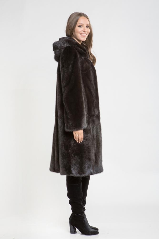 Полупальто из норкового меха с капюшоном, выполненное в стиле пластин. Внутри изделия и на рукавах предусмотрены регулирующие утяжки, которые позволяют подстроить его под ваш образ. Длина полупальто составляет 110 сантиметров. Этот элегантный вариант идеально подойдёт для тех, кто ценит классический стиль в одежде.