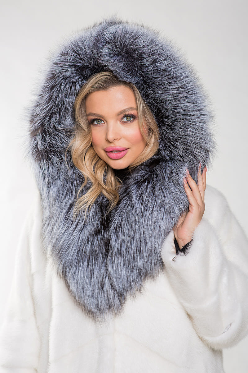 Белоснежные норковые пальто с капюшоном из лисы, арт.5968 из ассортимента интернет-магазина «Фабрика Меха» — это не просто предмет одежды, а выражение стиля и статуса. Благодаря высокому качеству материалов и уникальному дизайну, эта модель станет изысканным элементом вашего гардероба. Она хорошо сочетается с различными головными уборами, обувью и аксессуарами, что позволяет экспериментировать со стилем и самовыражением.