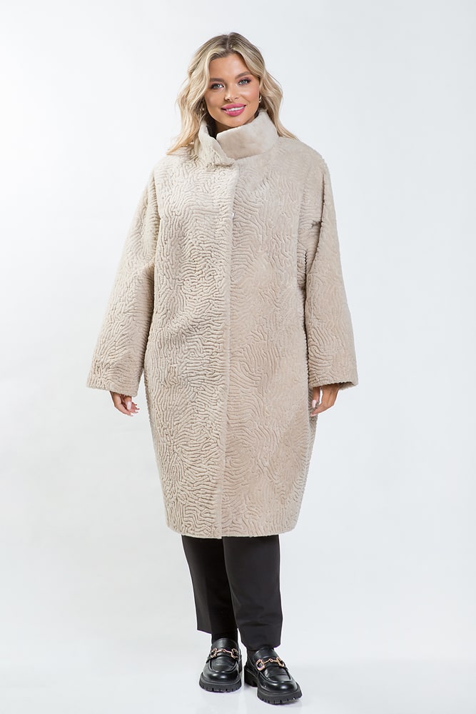 Мутоновое полупальто с ажурной выстрижкой, арт.1848