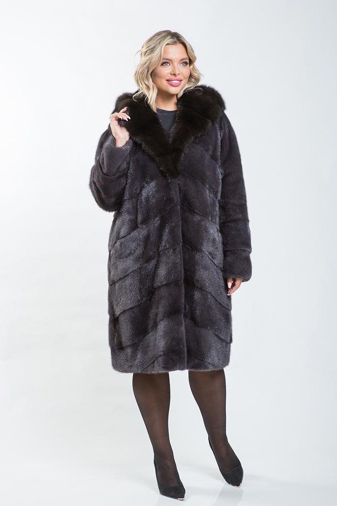 - изысканное декорирование капюшона мехом тонированной куницы, что добавляет норковому полупальто эксклюзивности;