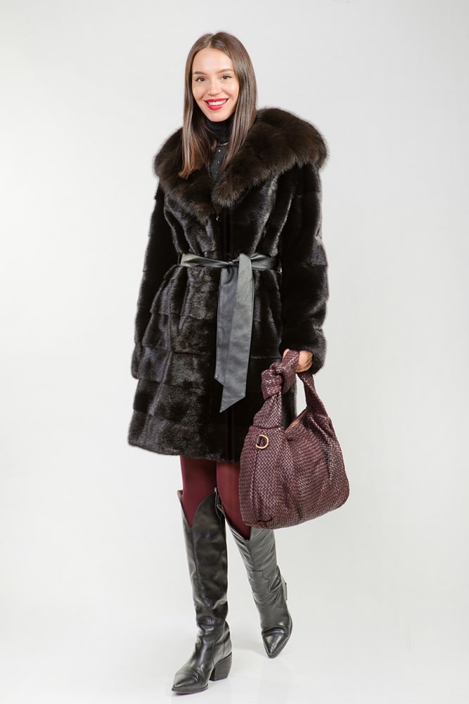 Приглашаем креативных модниц познакомиться с новой партией меховых моделей. Интернет-магазин получил партию полупальто-трансформеров из черной норки арт.5259. Особое очарование шубке обеспечивают капюшон, отороченный куницей, эффектная нижняя часть с поперечной выкладкой, имитирующая юбку. Она отстегивается, изделие превращается в короткую курточку. Нейтральный цвет позволяет создавать элегантные луки, неординарный фасон, оторочка из куницы делают модель отличным вариантом для молодежного, гламурного стиля. Используйте отличный шанс выгодного преображения зимнего образа!
