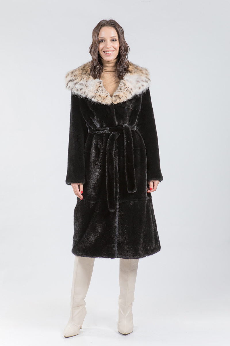 Норковые шубы полупальто с капюшоном, отороченным мехом рыси уже в продаже