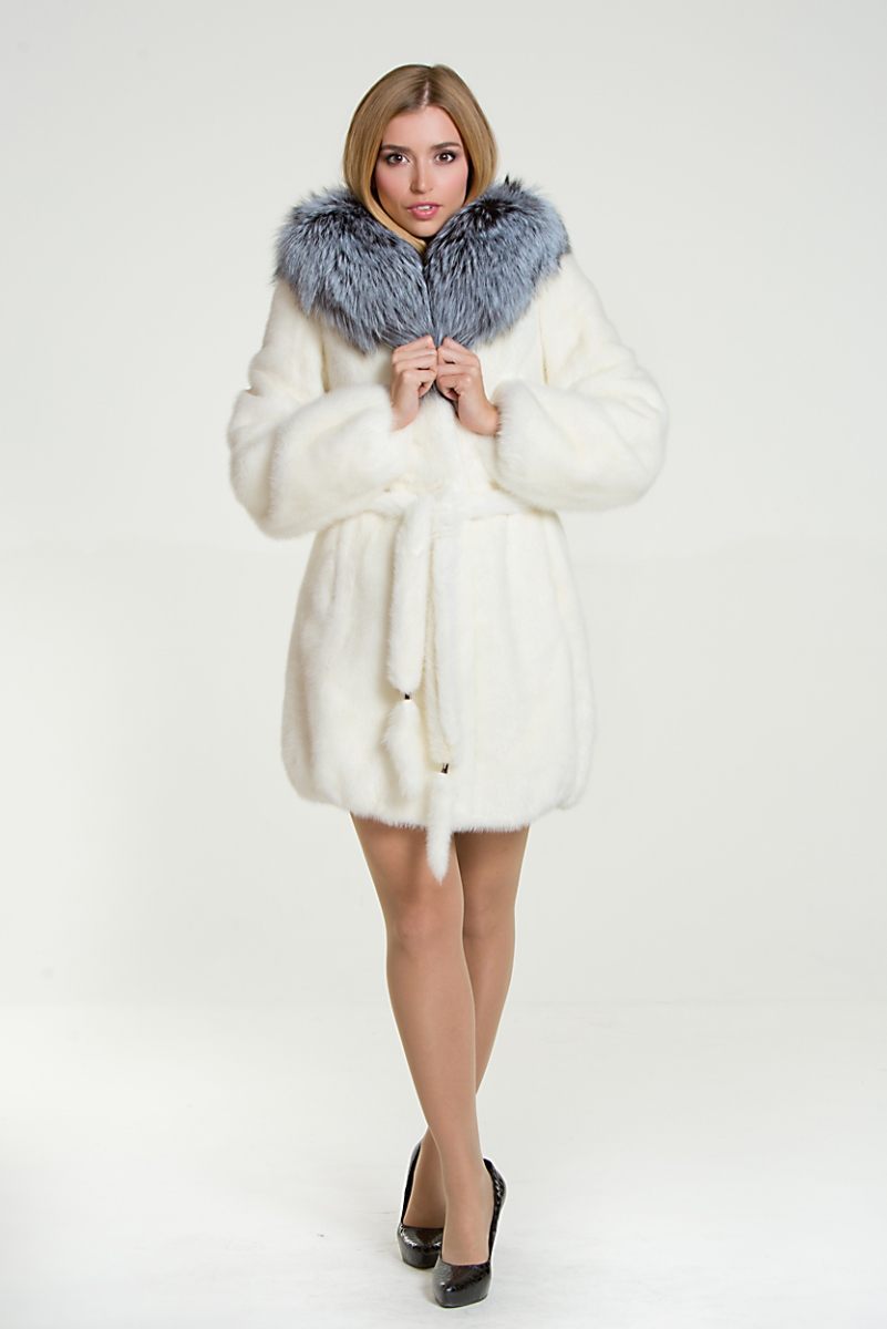 Полупальто из меха норки белого цвета, арт. 5435, которое продается по сниженной цене, сделает ваш зимний образ стильным, респектабельным и слегка кокетливым. Этому способствует: