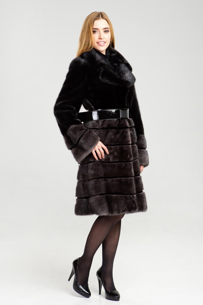- комбинированный крой – верх роспуск, низ поперечная выкладка пластин, добавляющий объема и позволяющий натуральному меху раскрыться во всей красе;